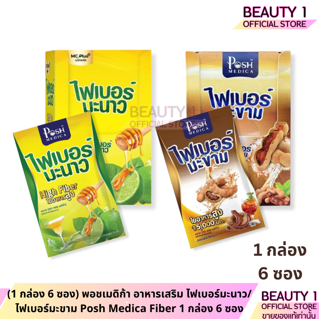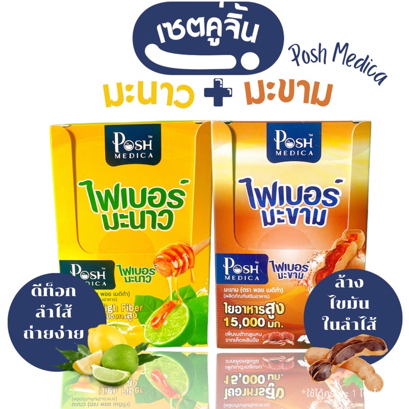 (1 กล่อง 6 ซอง) พอชเมดิก้า อาหารเสริม ไฟเบอร์มะนาว/ ไฟเบอร์มะขาม Posh Medica Fiber 1 กล่อง 6 ซอง
