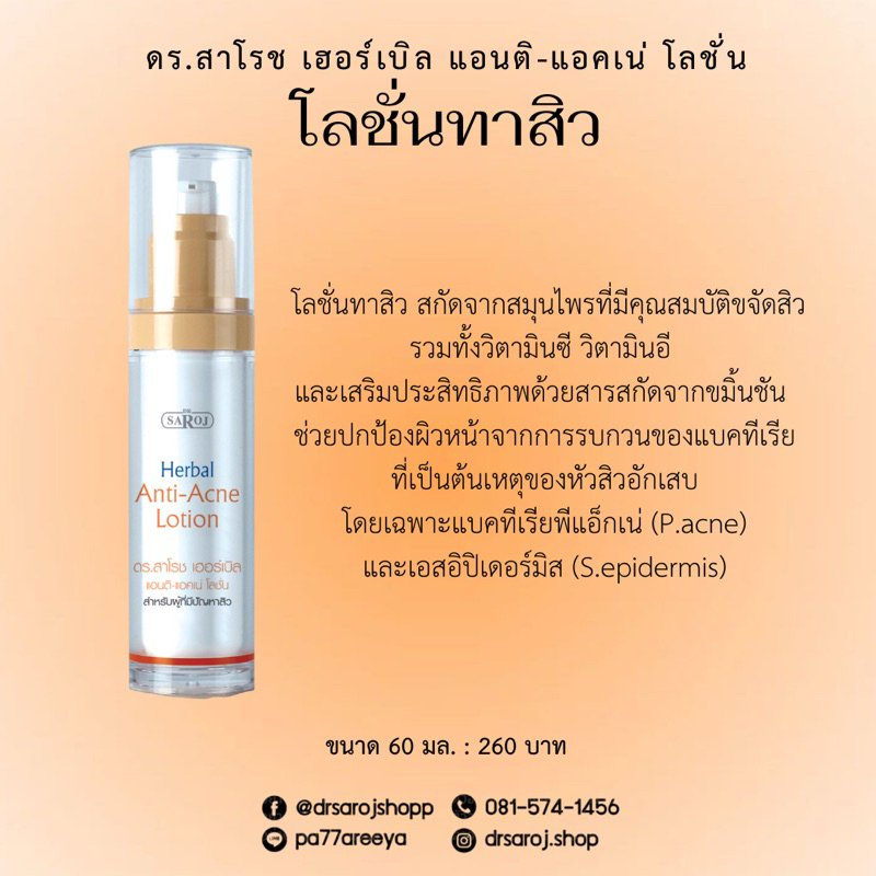 ดร.สาโรช เฮอร์เบิล แอคเน่เคลียร์ โลชั่น #รักษาสิวทุกชนิด #ทุกประเภท หายจริง