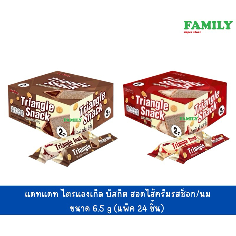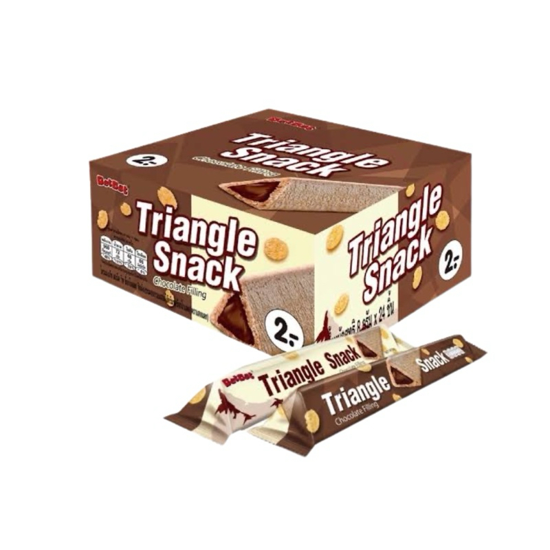 Datdat Triangle Snack แดทแดท ไตรแองเกิล บิสกิต สอดไส้ครีมรสช็อก/นม ขนาด 6.5 g (แพ็ค 24 ชิ้น) [ขนม]