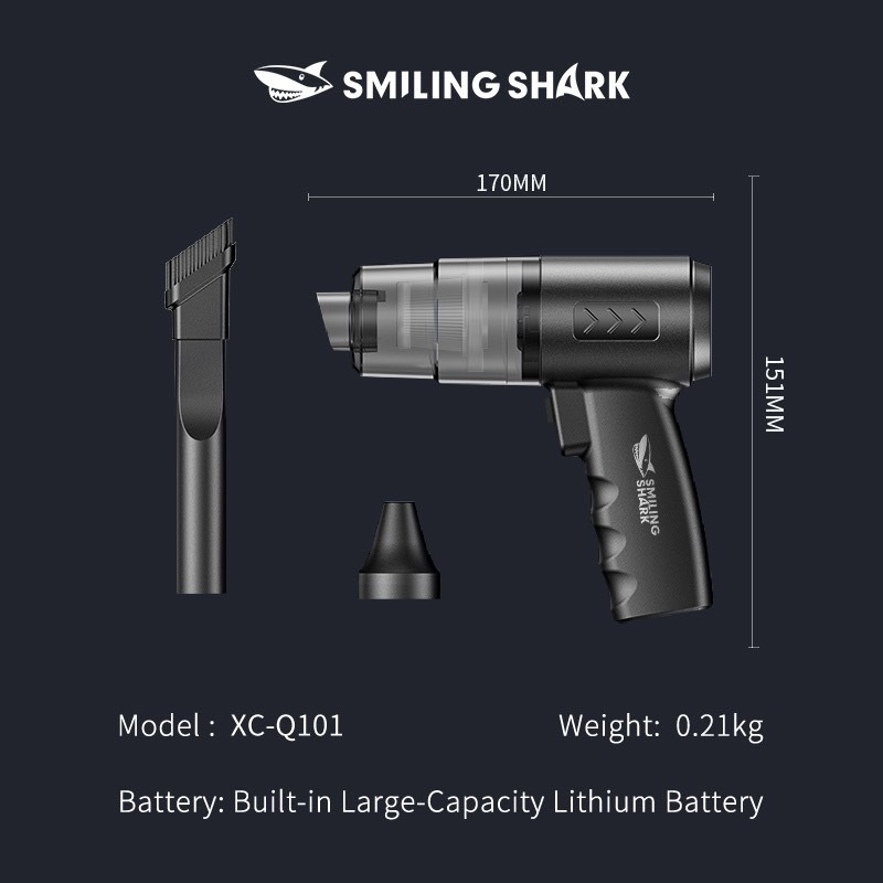 SmilingShark XCQ101 ที่ดูดฝุ่น mini ไร้สาย โบลเวอร์และดูด เครื่องดูดฝุ่นรถยนต์ 6โหมด Type-C ชาร์จใหม่ได้ พร้อมหัวดูดคู่