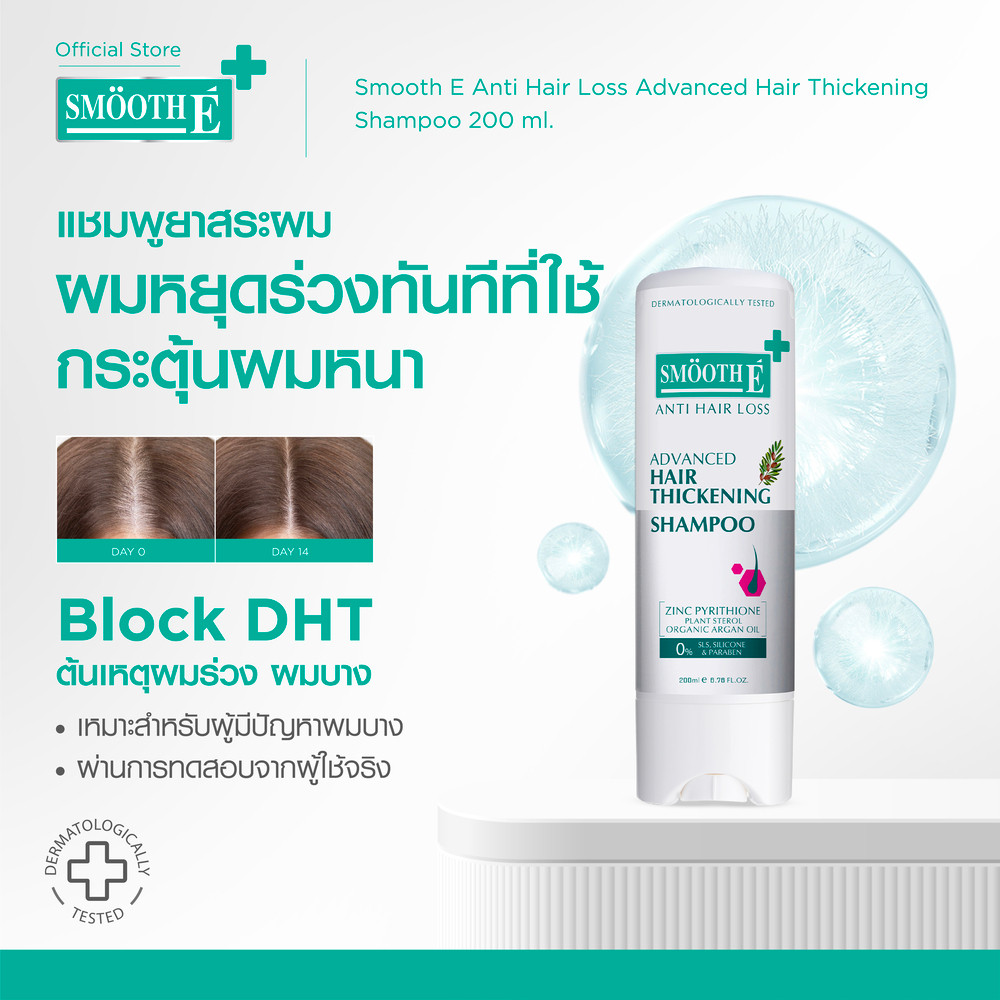 Smooth E Anti Hair Loss Hair Thickening Shampoo 75 ML. / 200 ML. แชมพูยา ลดผมร่วง กระตุ้นผมหนาจากราก 5X ขจัดรังแค