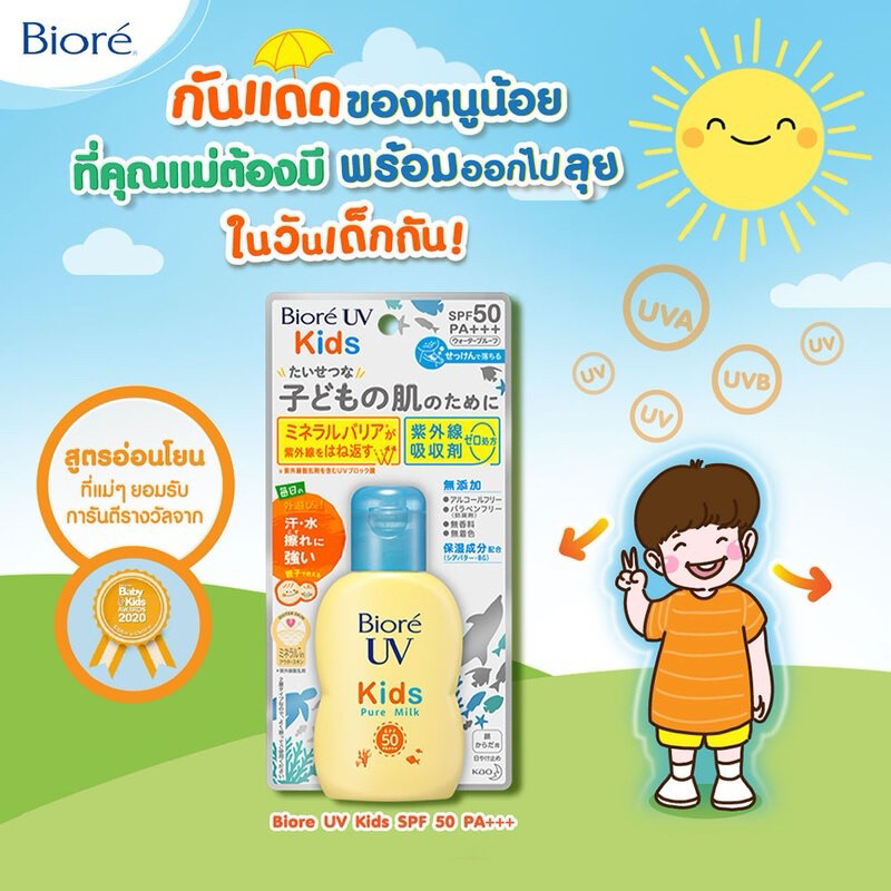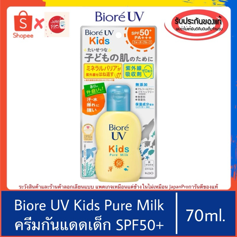 🇯🇵ของแท้100%>>Biore UV Kids Pure Milk SPF50+ PA+++ ครีมกันแดดน้ำนมสำหรับเด็ก 70มล.