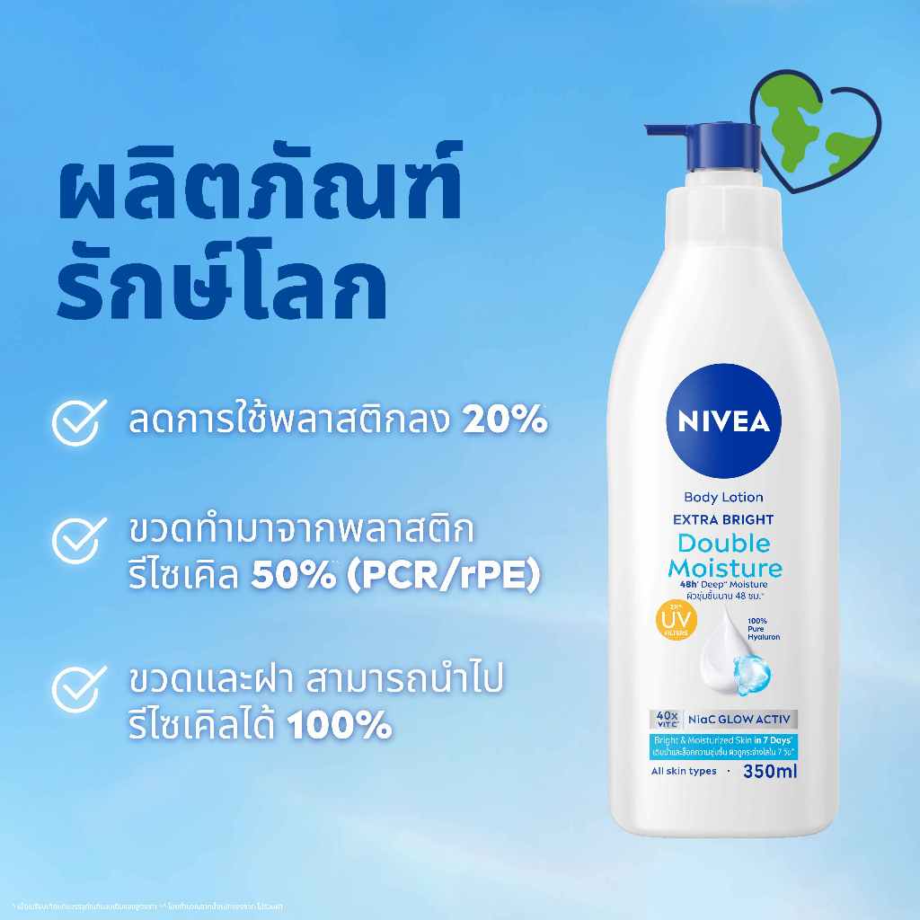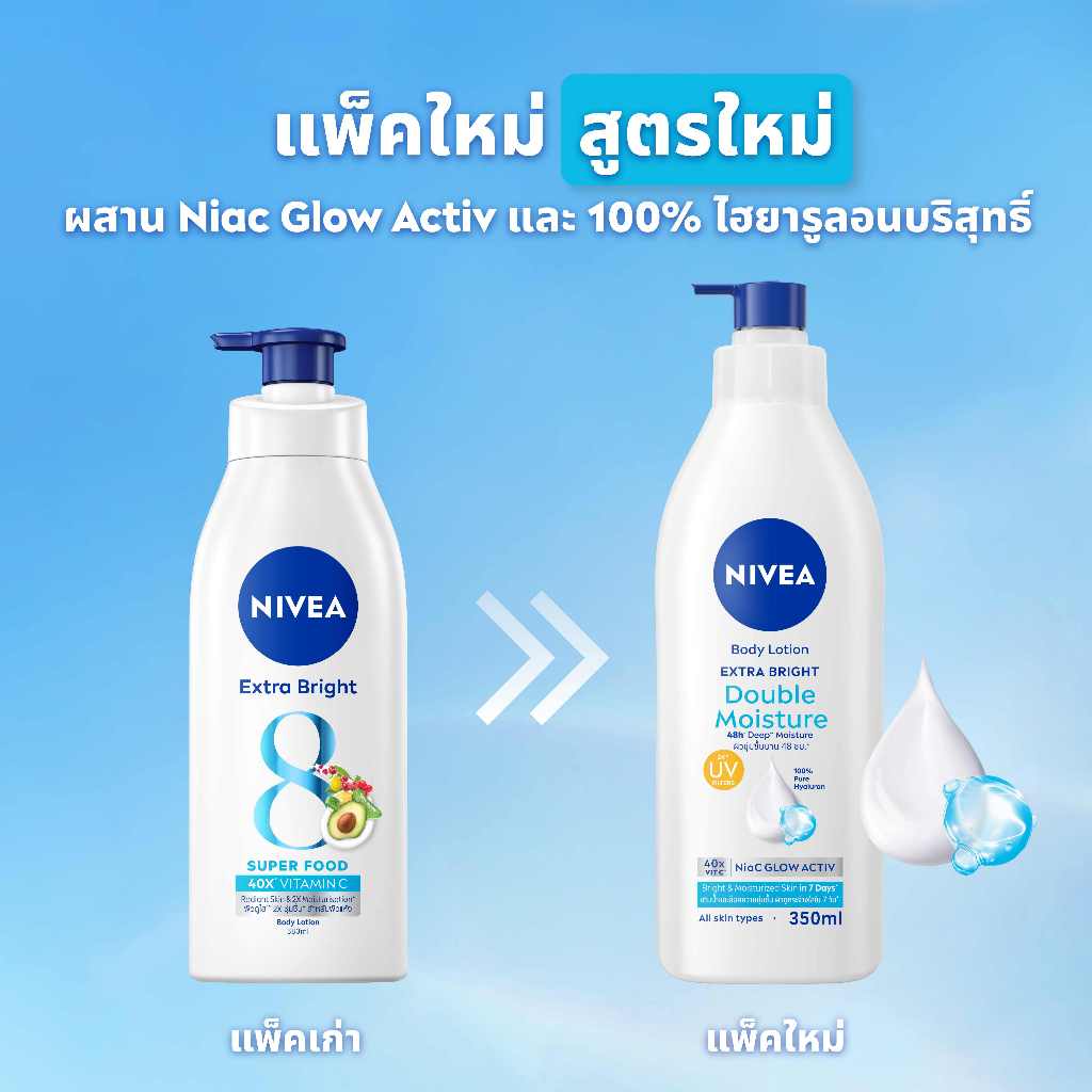 นีเวีย เอ็กซ์ตร้า ไบรท์ ดับเบิ้ล มอยส์เจอร์ บอดี้ โลชั่น 500 มล. 2 ชิ้น NIVEA