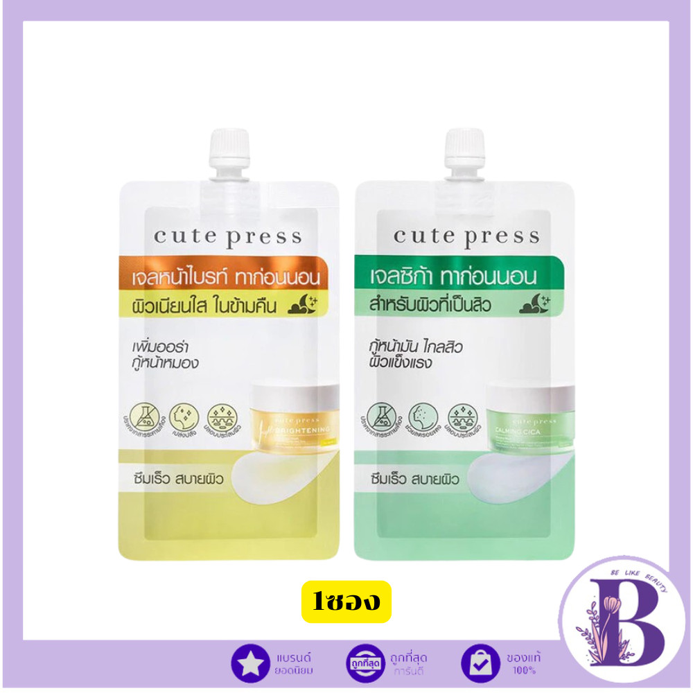 🔥แท้/ถูกที่สุด/ไลฟ์ทุกวัน🔥(1ซอง) Cute Press Mask คิวท์เพรส มาสก์บำรุงผิวหน้า 10g (Calming Cica/1 Night Brightening)