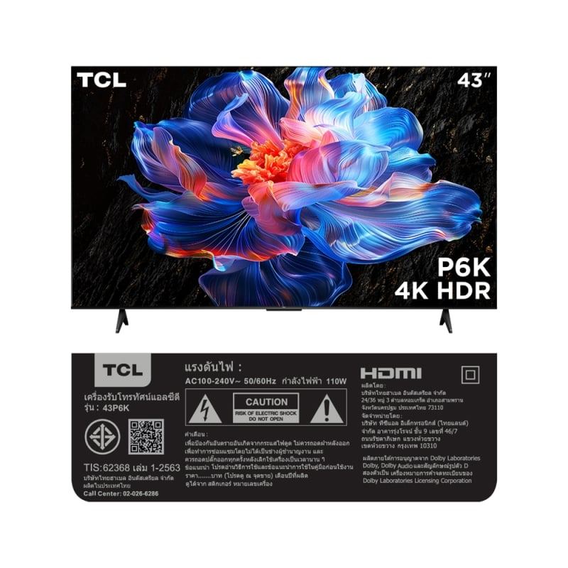TCL ทีวี P6K Google TV 43 นิ้ว 4K UHD LED รุ่น 43P6K ปี 2025