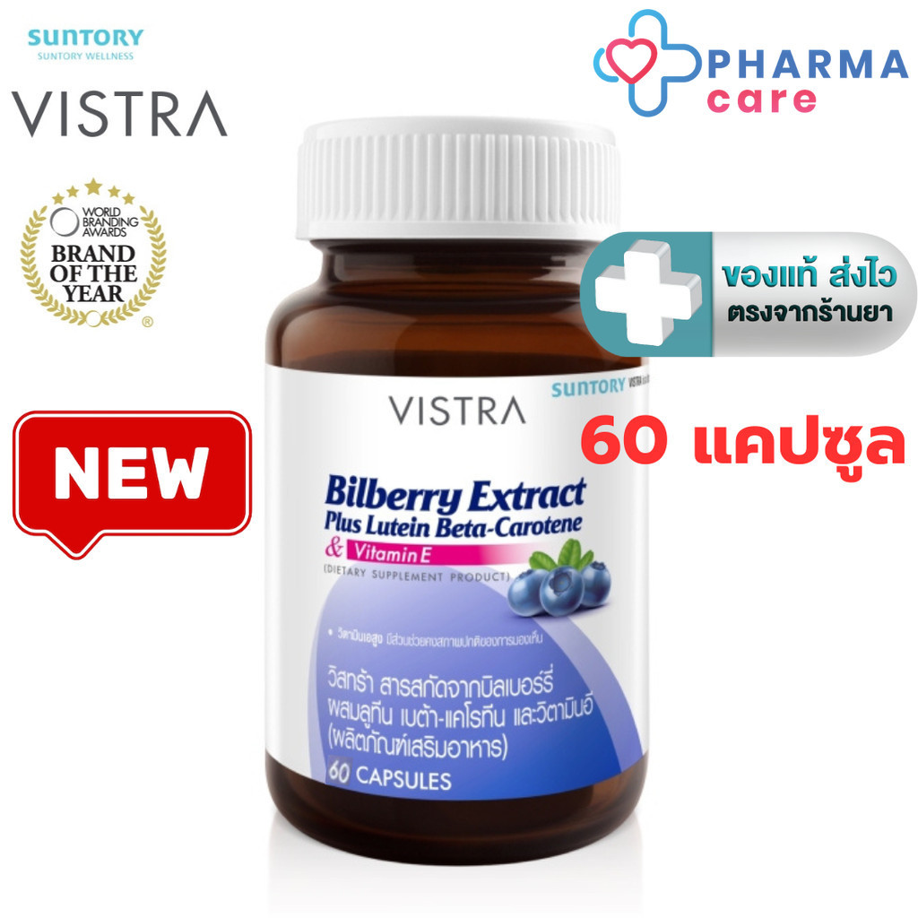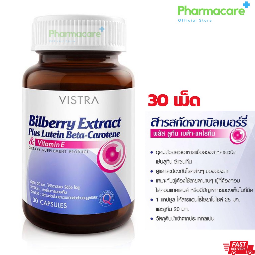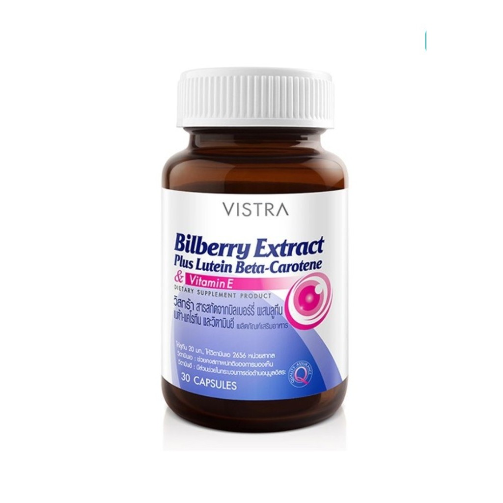 Vistra Bilberry Extract Plus Lutein วิสทร้า บิลเบอร์รี่ เอ็กซ์แทรค พลัส ลูทีน เบต้า แคโรทีน 1 ขวด 30, 60 แคปซูล [Pcare]