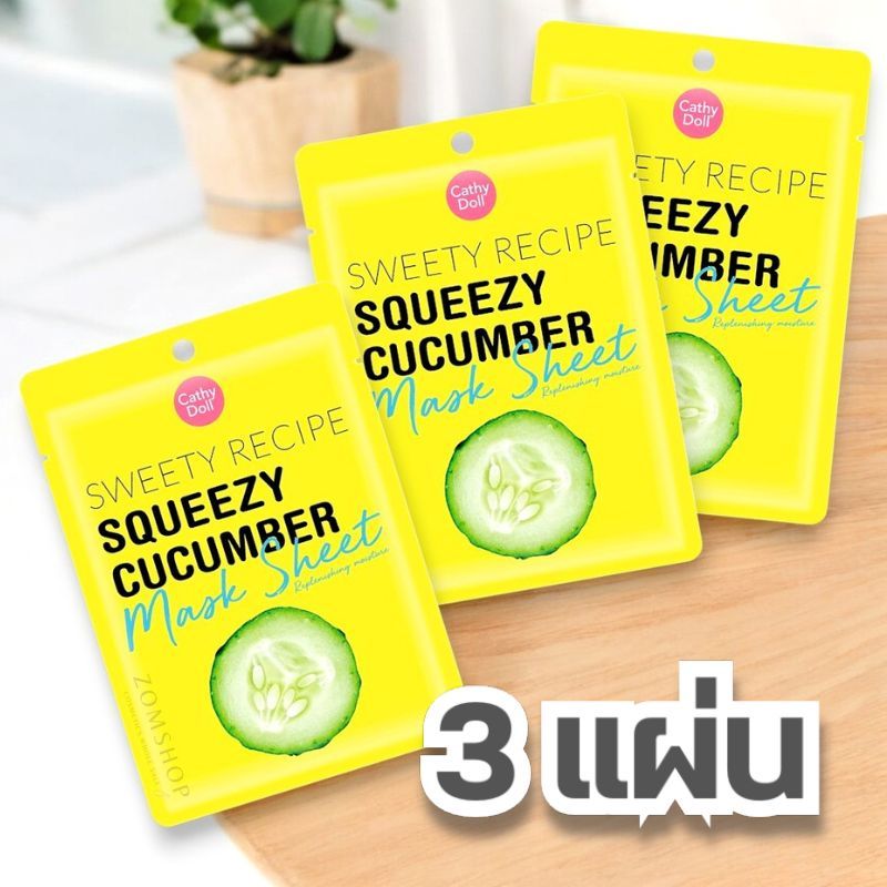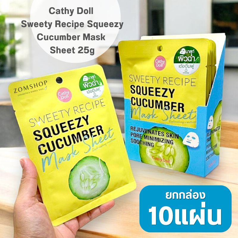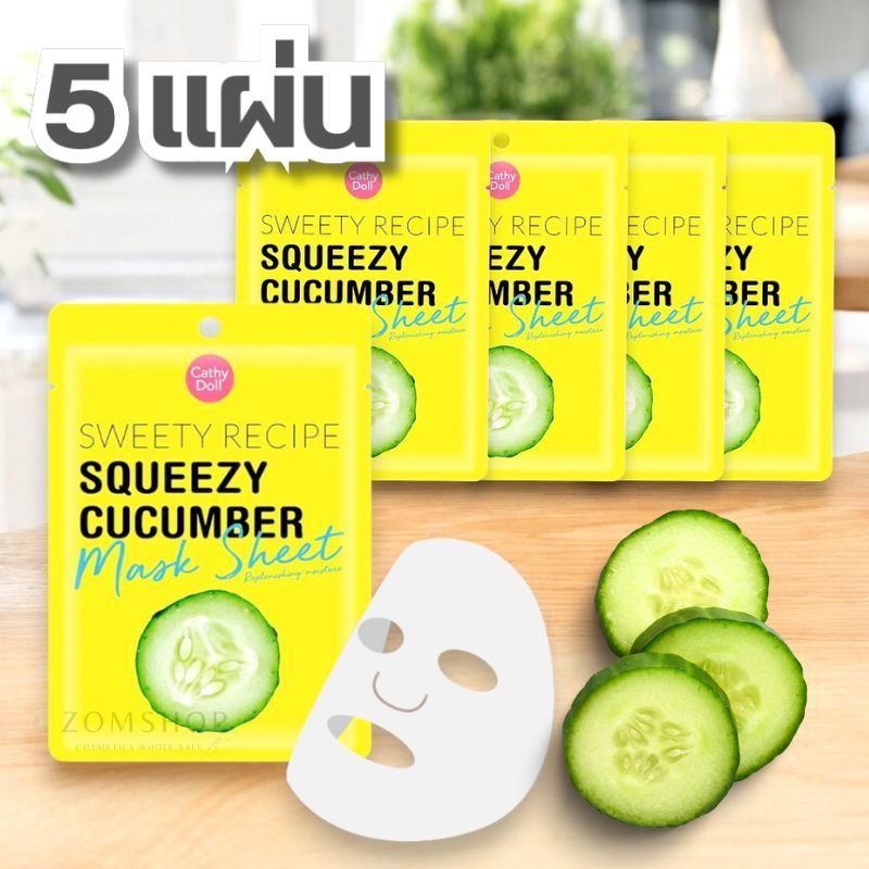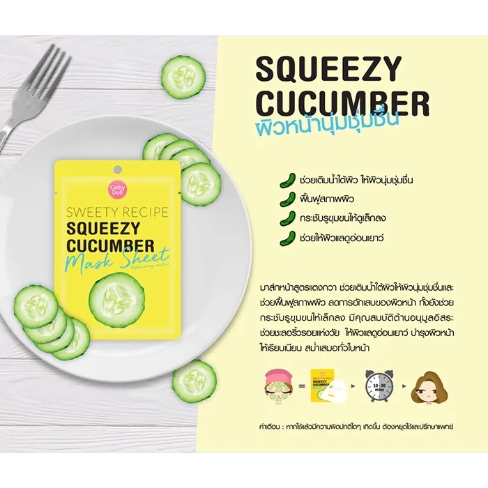 แผ่นมาส์กหน้า มาส์กผัก【สูตรแตงกวา】Cathy Doll Sweety Recipe Squeezy Cucumber Mask Sheet 25g