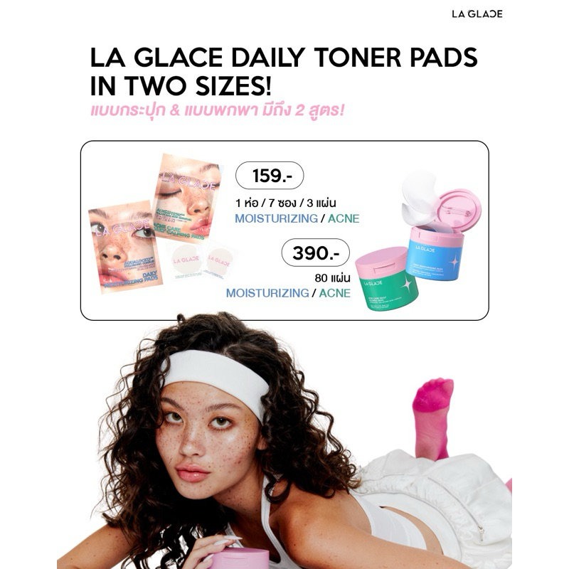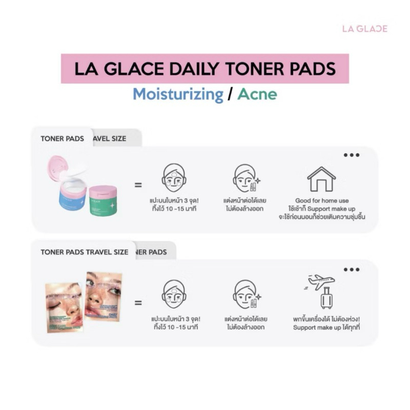 [สั่งในไลฟ์ลด100฿💚] ลากลาสโทนเนอร์แพด LA GLACE DAILY TONER PADS ACNE&MOIST โทนเนอร์แพดลากลาส มี2สูตร