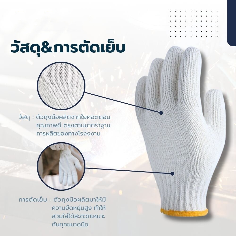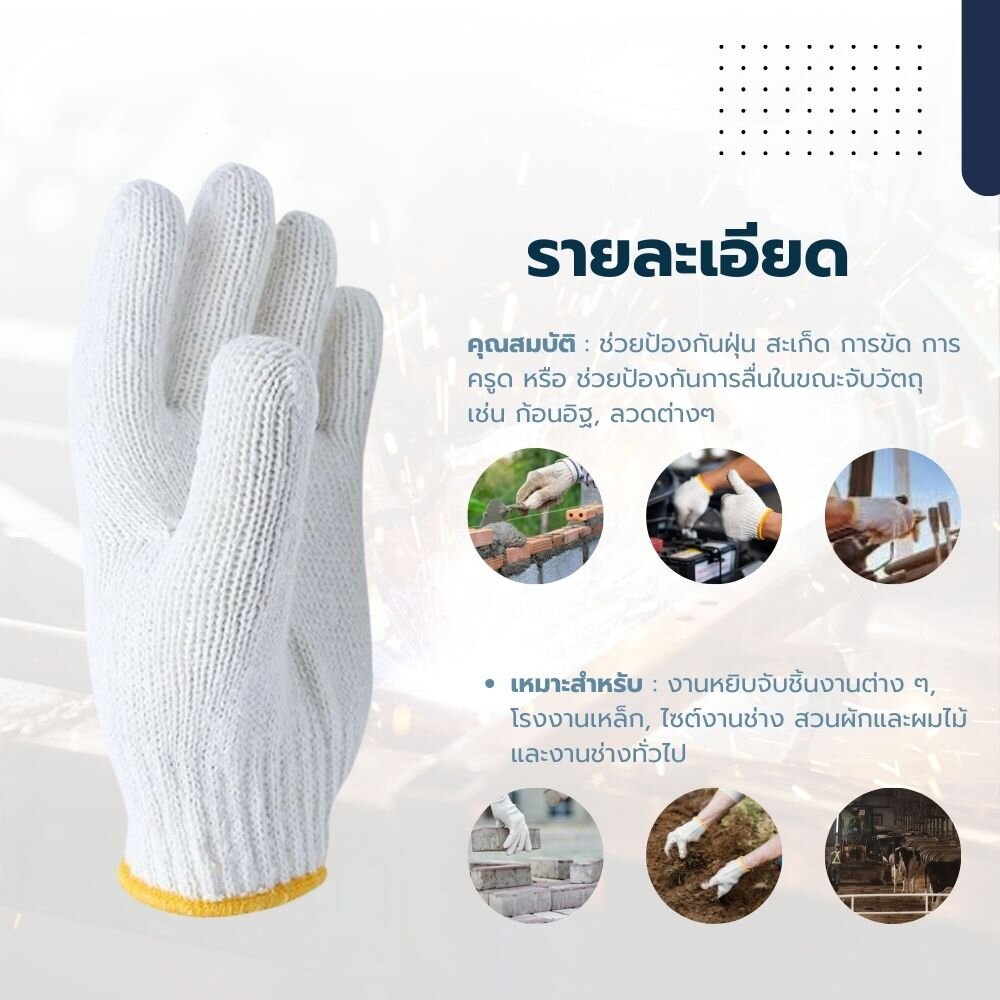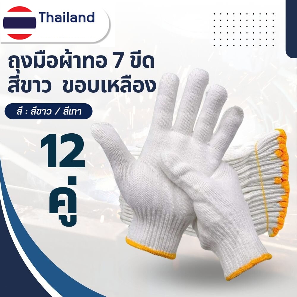 ถุงมือผ้า (แพ็ค12คู่) ถุงมือทอผ้าฝ้าย ถุงมือผ้าฝ้าย ถุงมือผ้าสีขาว สำหรับใส่ทำงาน ทำสวน ราคาถูก เกรดอย่างดี