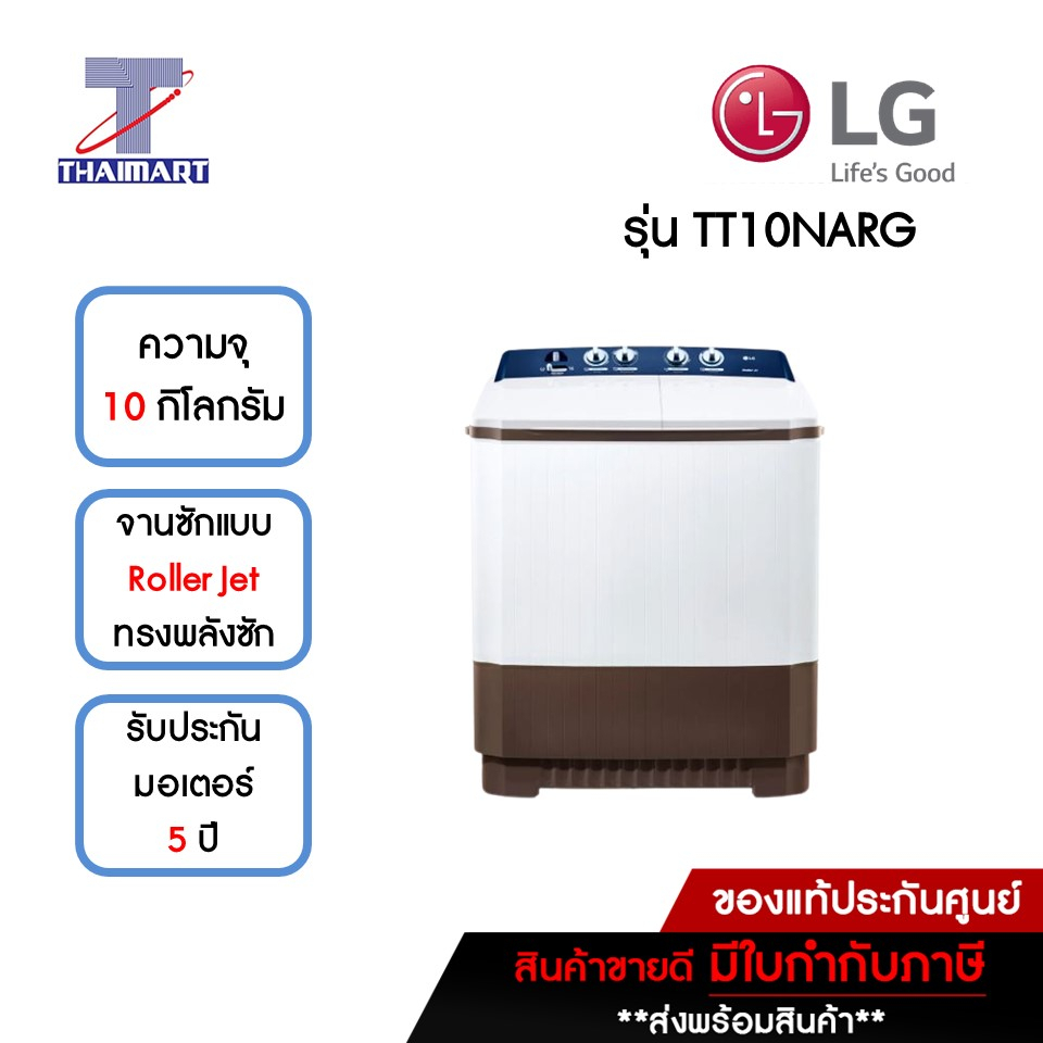 LG เครื่องซักผ้า 2 ถัง 10 กิโลกรัม รุ่น TT10NARG | ไทยมาร์ท THAIMART
