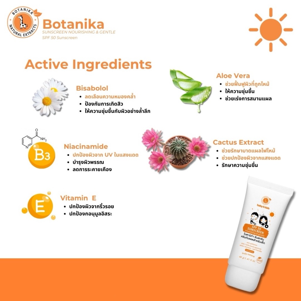 Botanika ครีมกันแดดสำหรับเด็ก ออร์แกนิค SPF 50+ PA+++ Organic Sunscreen For Kids SPF 50+ PA+++ (40 g)