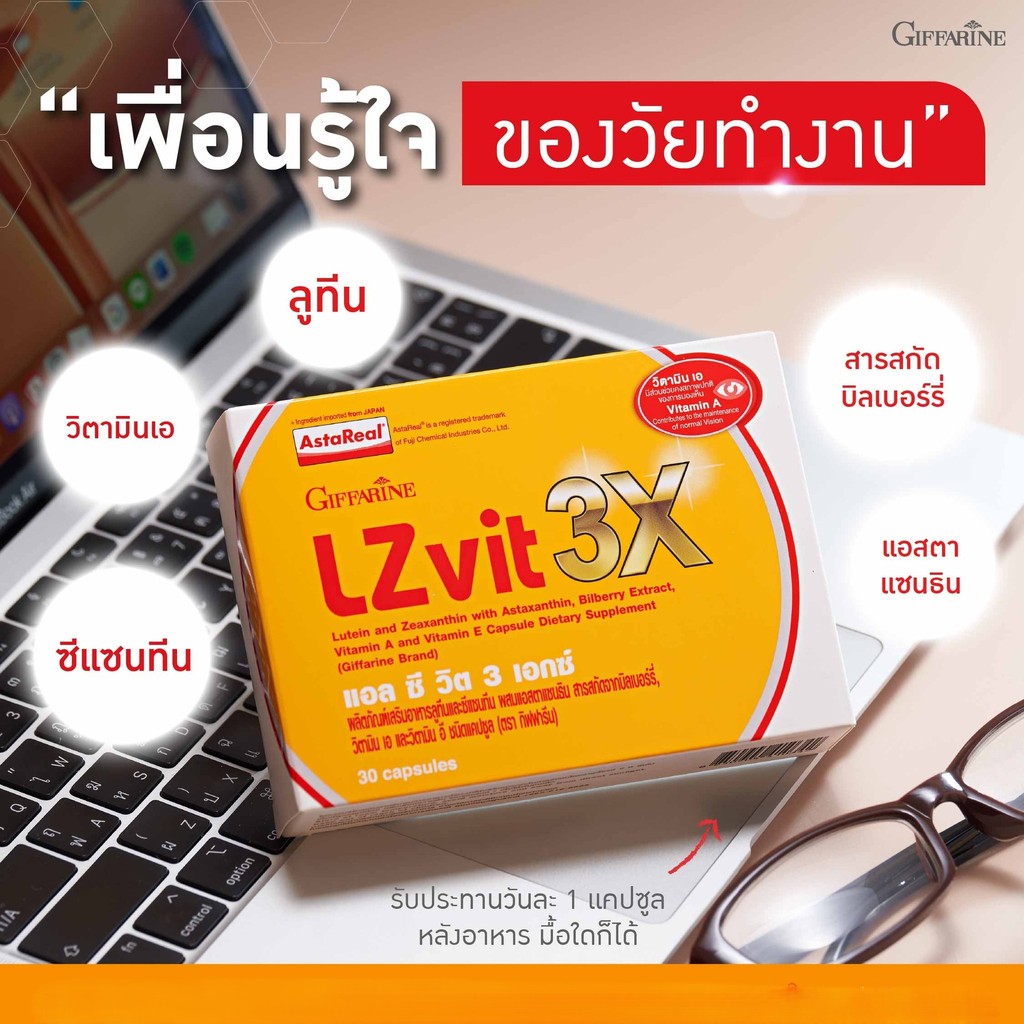 กิฟฟารีน บำรุงดวงตา สูตรเข้มข้น แอลซีวิต 3 เอกซ์ วิตามินเอ ลูทีน เบอร์รี่ Giffarine LZ VIT 3X [30 เม็ด]