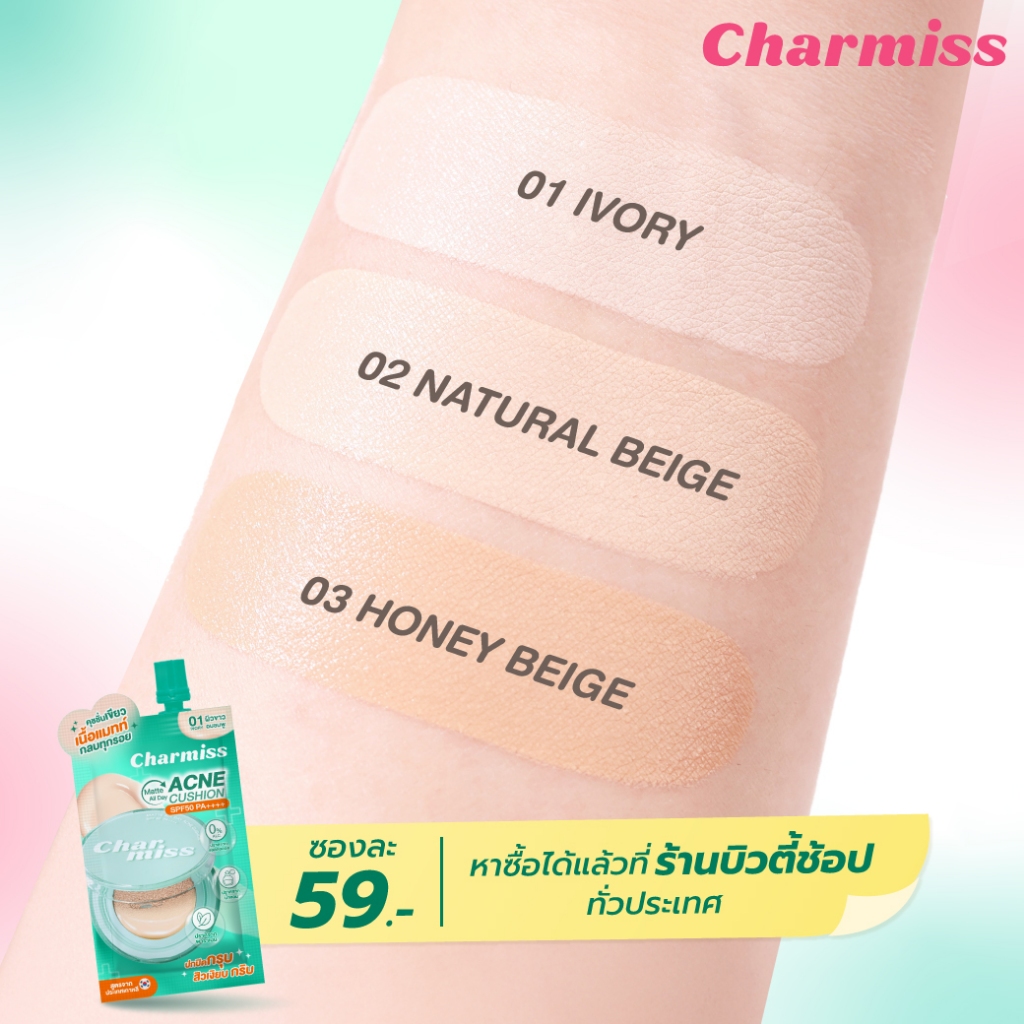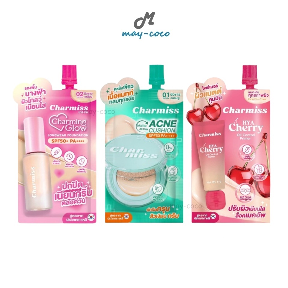 ถูก/แท้/มีไลฟ์ (ซอง) ไพรเมอร์ รองพื้น คุชชั่น Charmiss Charming Glow Foundation/Acne Cushion/Hya Cherry Primer ชาร์มิส