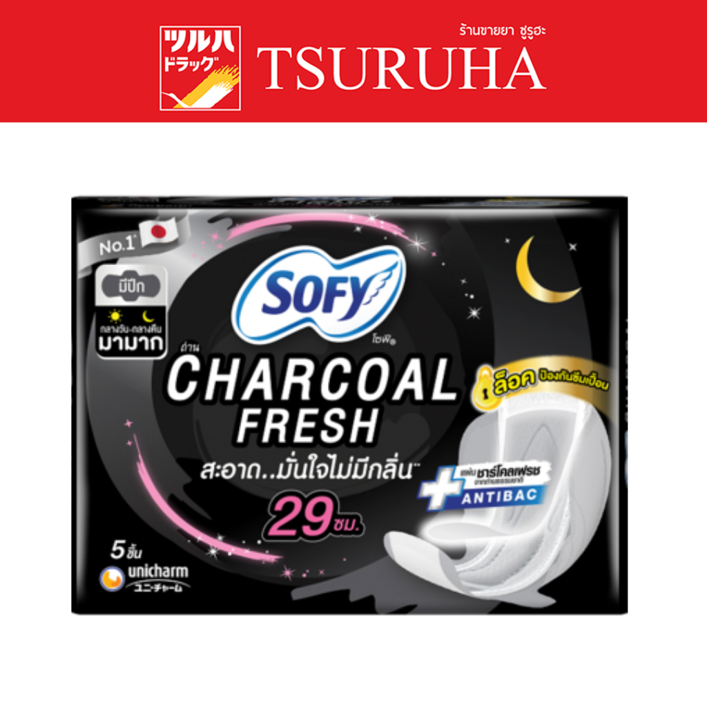 โซฟีชาร์โคลเฟรช สลิม กลางคืน มีปีก 29ซม. 5 ชิ้น/Sofy Than Charcoal Fresh Night Wing 29cm. 5Pcs.