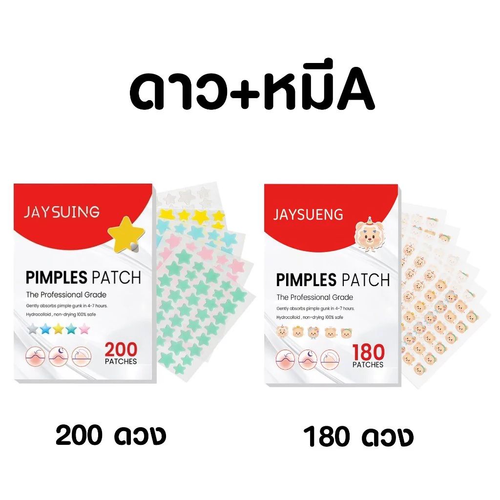 แผ่นแปะสิว 1 แถม 1 🌟 ลายดาว + หมีA / ดาว + หัวใจ / ดาว + ดาว น่ารัก กันน้ำ แผ่นแปะสิวน่ารัก