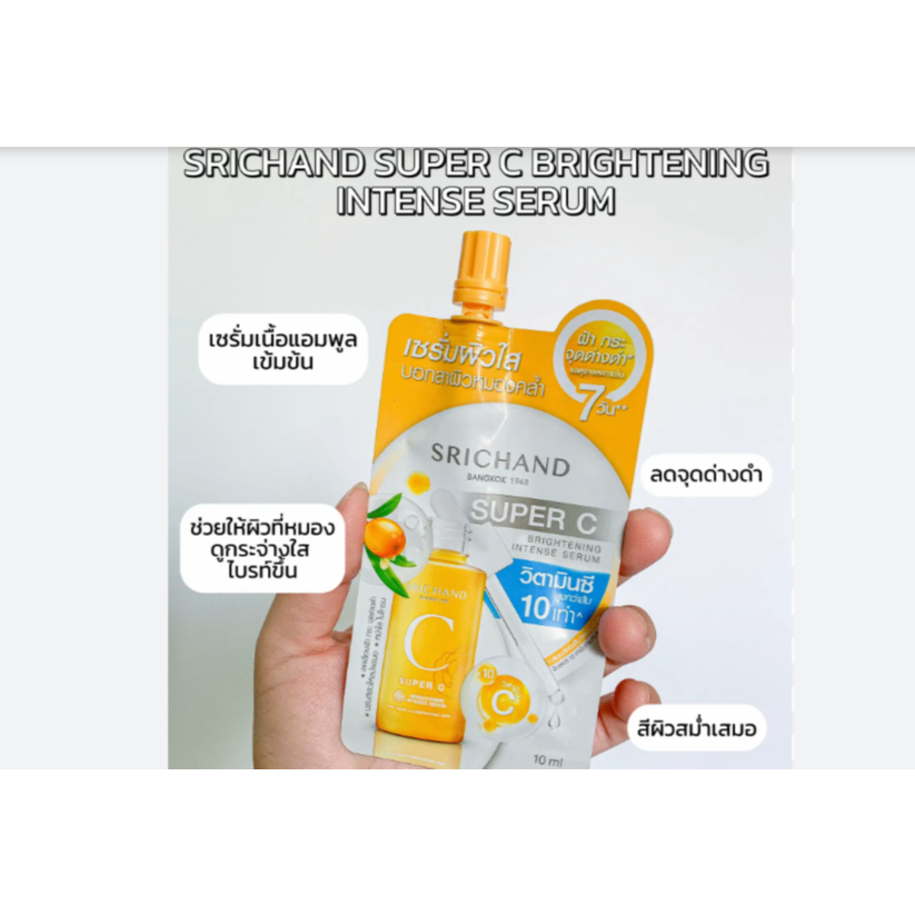 1 ซอง Srichand Super C Brightening serum ศรีจันทร์ ซุปเปอร์ ซี ไบร์ทเทนนิ่ง อินเทนซ์ เซรั่ม 10มล. หน้ากระจ่างใสขึ้น