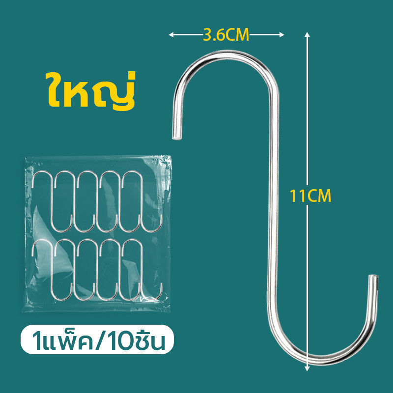 ตะขอแขวน 10ชิ้น 3ขนาด รับประกันแข็งแรงทนทาน ไม่เป็นสนิม ตะขอตัว ตะขอ
