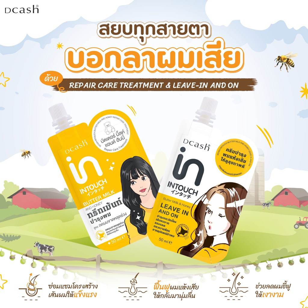 Dcash ดีแคช อินทัช ทรีทเม้นท์ & ลีฟออน 50 กรัม ฟื้นบำรุงผมแห้งเสีย ผมนุ่มลื่น ผมเงางาม