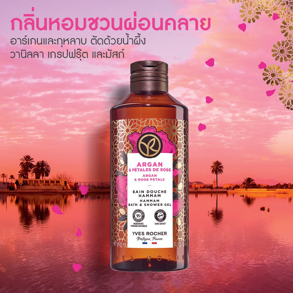 [แพ็คคู่] อีฟ โรเช Yves Rocher Argan & Rose Petals Hammam Bath & Shower Gel 400มล. -เจลอาบน้ำ กลิ่นอาร์เกนกุหลาบ