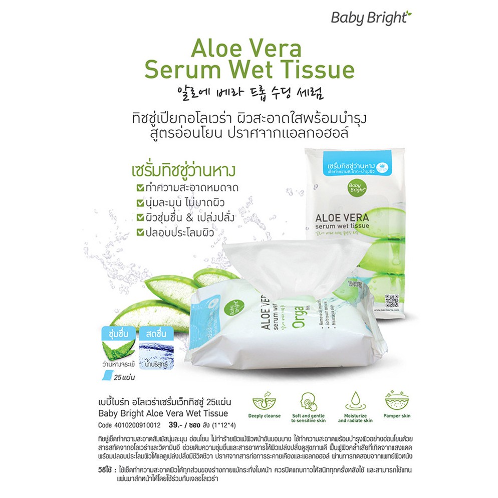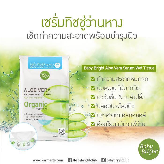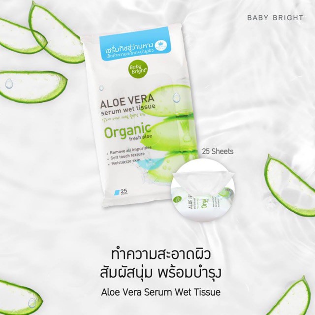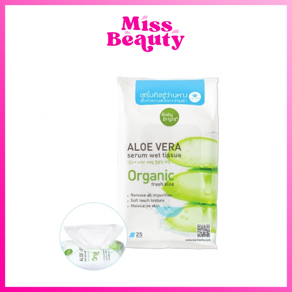 Baby Bright Aloe Vera Serum Wet Tissue เบบี้ไบร์ท ทิชชู่เปียก แผ่นเช็ดเครื่องสําอาง 25 แผ่น เบบี้ ไบร์ท