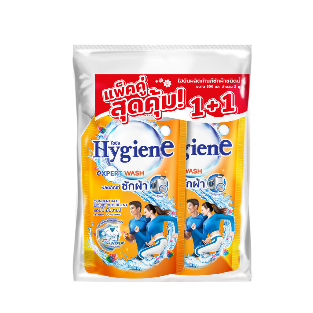 Hygiene ไฮยีน ผลิตภัณฑ์ซักผ้า ชนิดน้ำ เอ็กซ์เพิร์ท วอช แฮปปี้ ซันชายน์ ถุงเติม 600 มล.X2