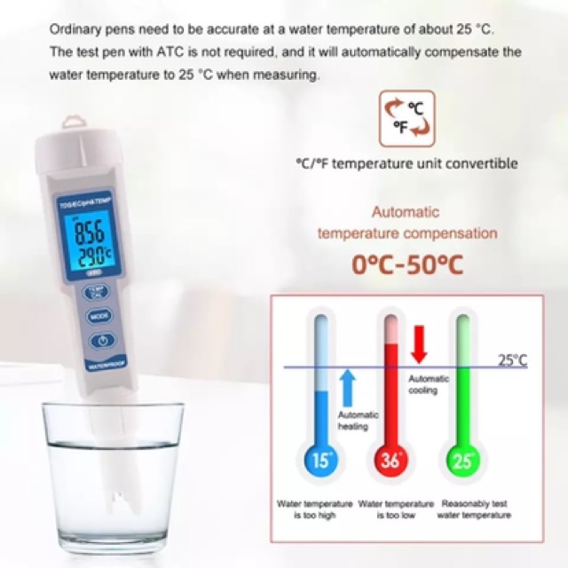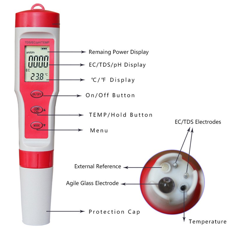 🔥4in1🔥 TDS PH Temp EC Water Meter เครื่องวัดคุณภาพน้ำ เครื่องวัดสภาพน้ำ สระว่ายน้ำ