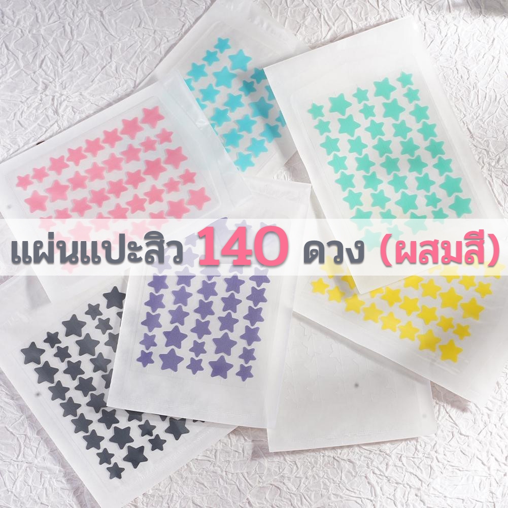 แผ่นแปะสิว 140 ดวง(ผสมสี) รูปดาว สีสันสดใส สําหรับติดตกแต่งสิว แผ่นแปะสิวสีซ่อมแซมหลุมสิวและรอยต่างๆ ทำให้สิวจางลง