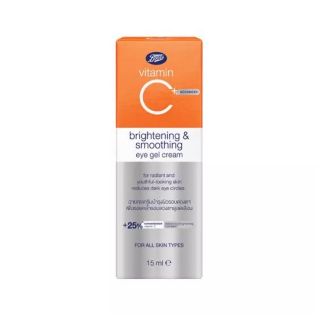 ใหม่ล่าสุด Boots Vitamin C Advance Eye Gel วิตามินซี แอดวานซ์ ไบร์ทเทนนิ่ง แอนด์สมูทติ้ง อาย เจล ครีม ขนาด 15 มล