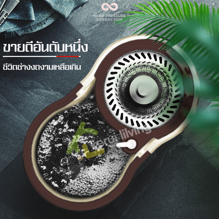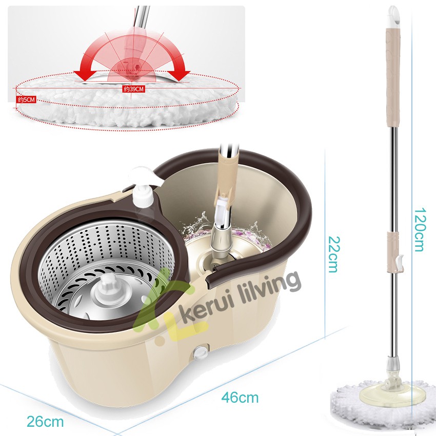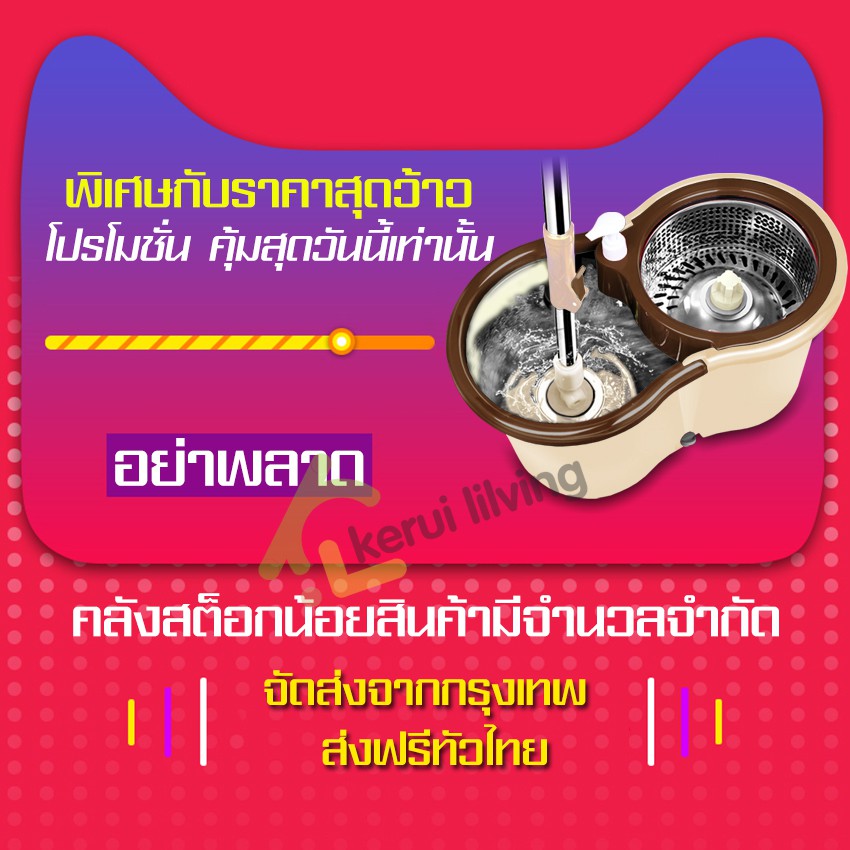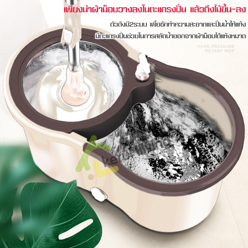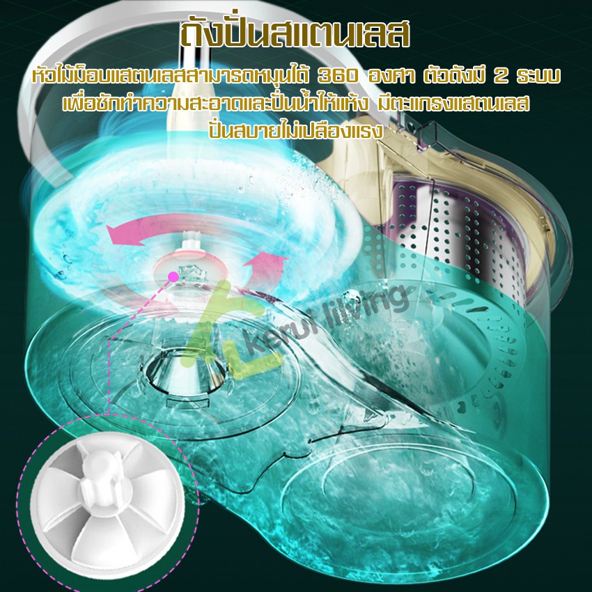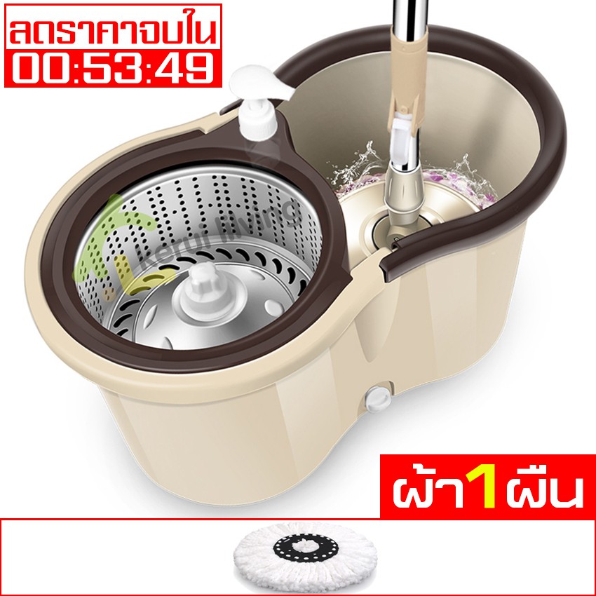 Softkiss ไม้ถูพื้น ชุดถังปั่นสแตนเลส ชุดถังปั่นถูพื้น พร้อมผ้าม็อบ Spin Mop แถมขวดปั้ม สินค้าขายดี