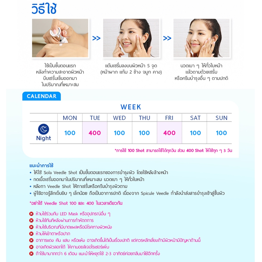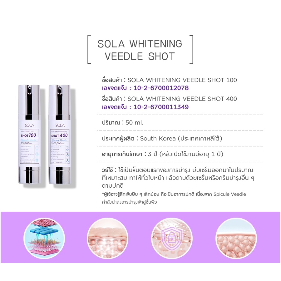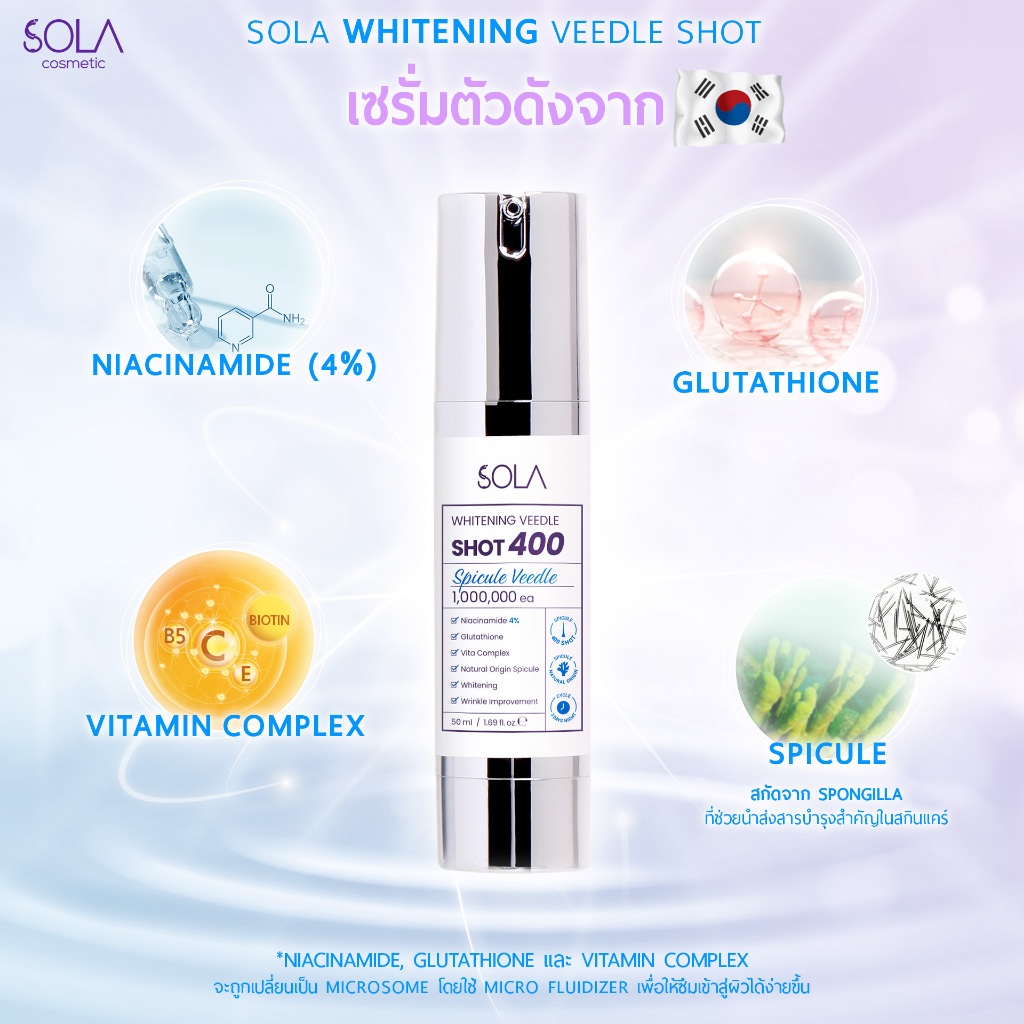 Sola - โซลา ไวเทนท์นิ่ง วีเดิ้ลช็อต 100 (shot) , 400 (shot) 50ml. เซรั่มเข็มเปิดผิว ลดสิว จุดด่างดำ