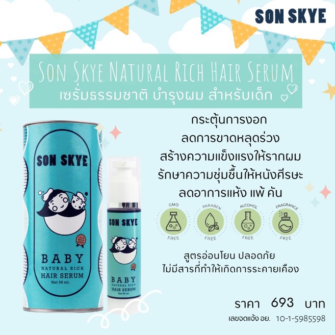 Son Skye เซรั่มบำรุงผมสำหรับเด็ก สูตรอ่อนโยน เหมาะสำหรับผิวบอบบางและแพ้ง่าย