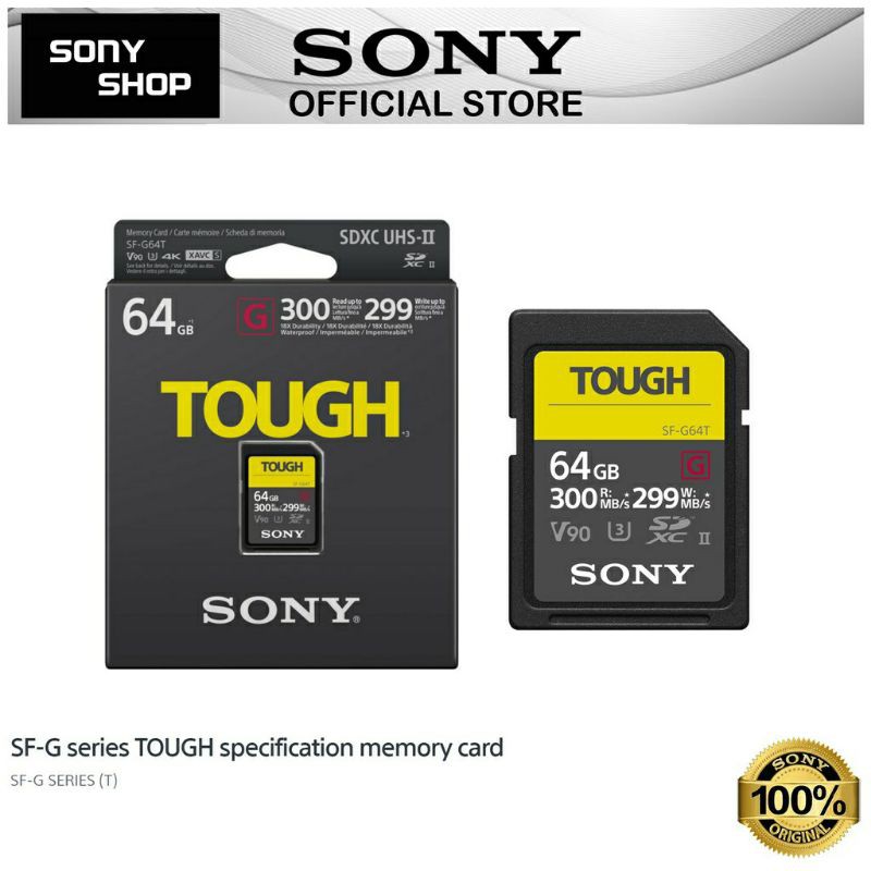 Sony SD Card SF-G64T U3 UHS-II SDXC Memory Card V90 4K XAVCS 300MB/s (64GB)