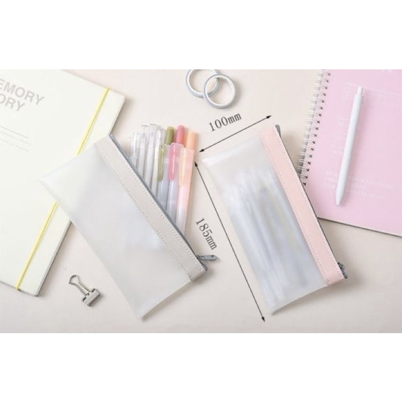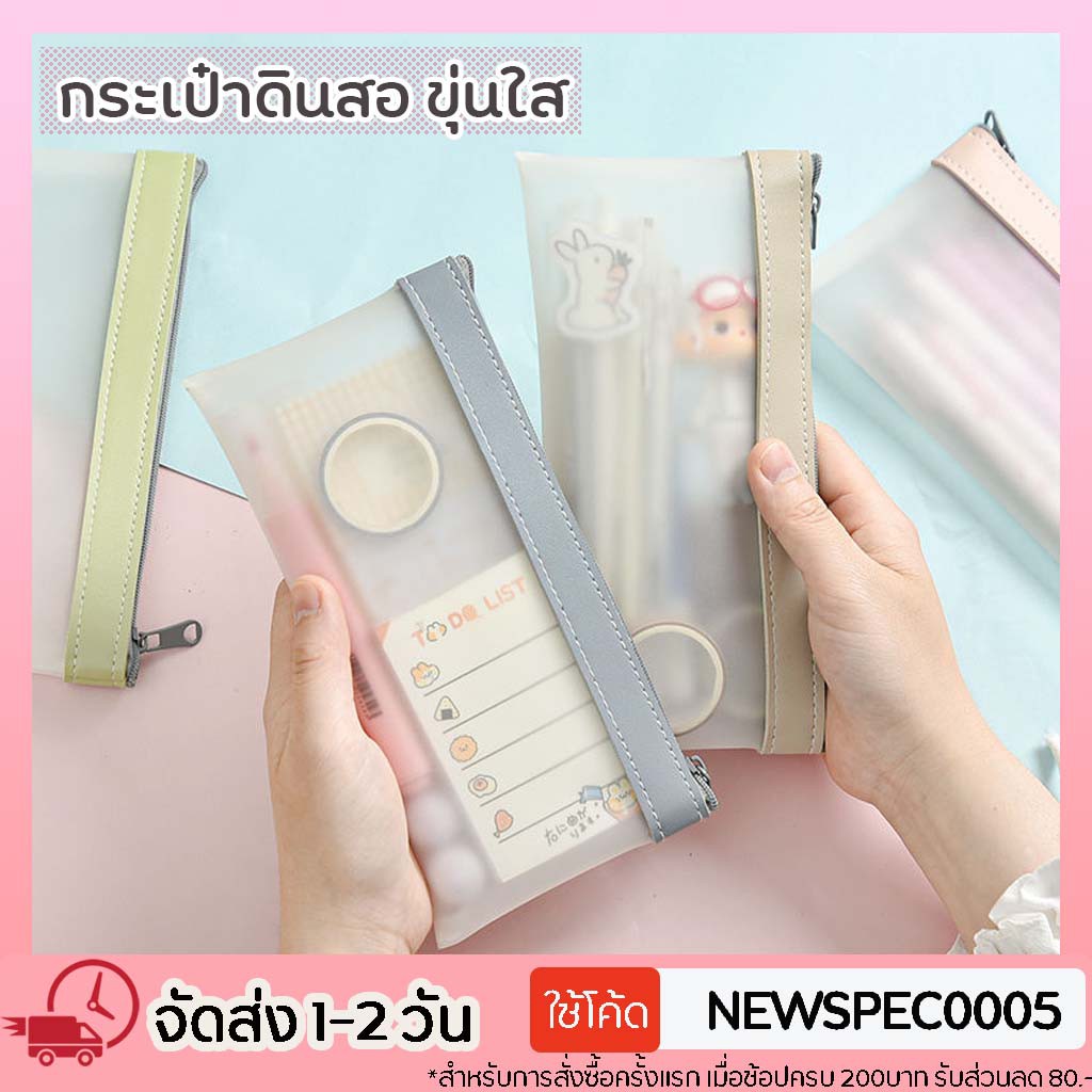 Specialthing กระเป๋าดินสอ แบบขุ่นใส มีซิป กระเป๋าใส่ปากกา กล่องดินสอ สไตล์ญี่ปุ่น น่ารัก เรียบๆ