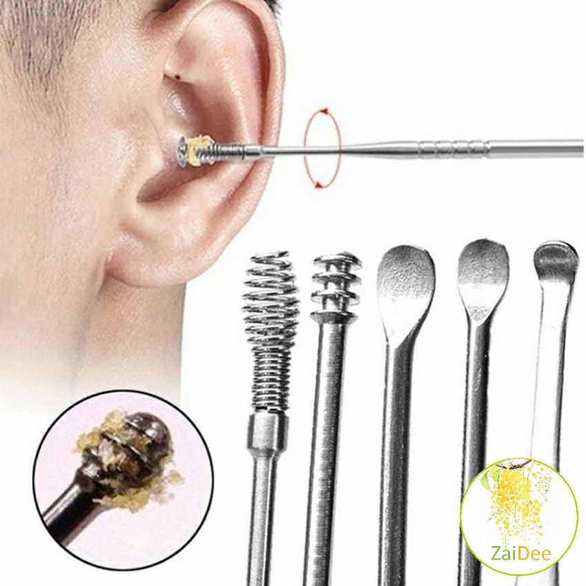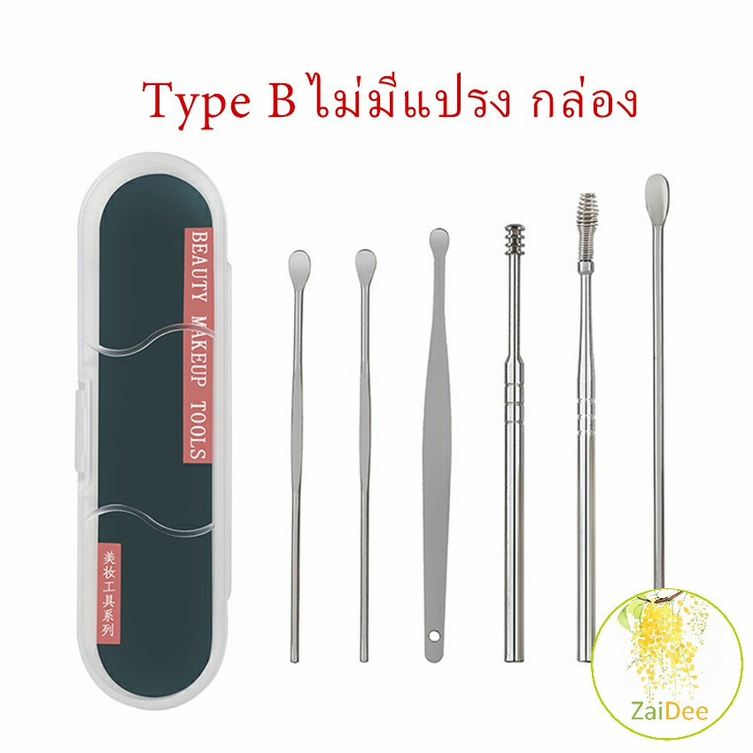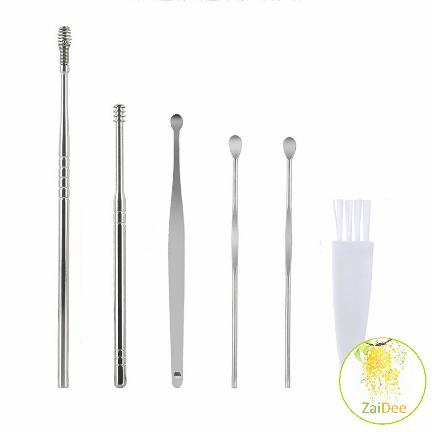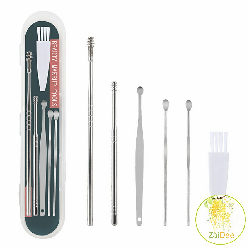 ชุดไม้แคะหู พร้อมกล่องใส่ คุณภาพดี 6 ชิ้น วัสดุสเตนเลส ขนาดสามารถพกพา ราคาถูก ที่แคะหู Ear picking set
