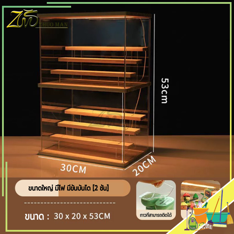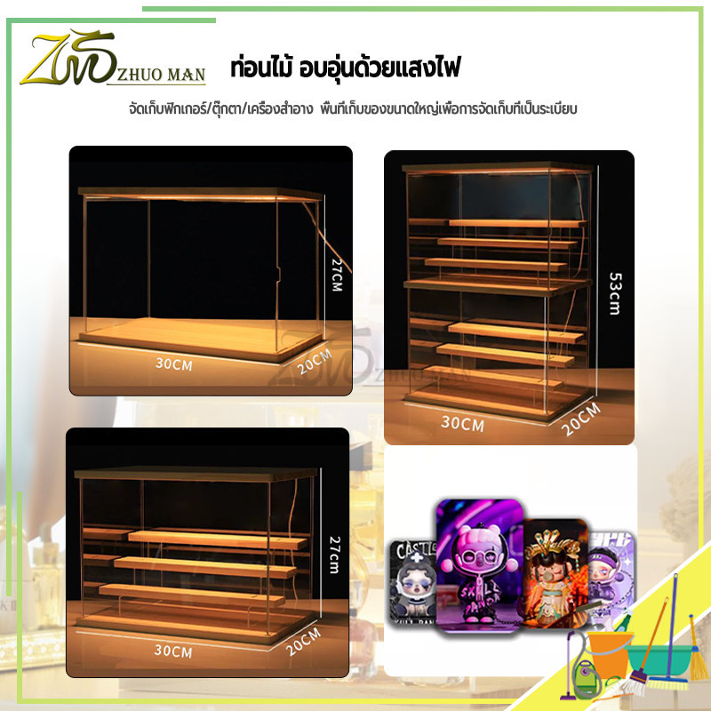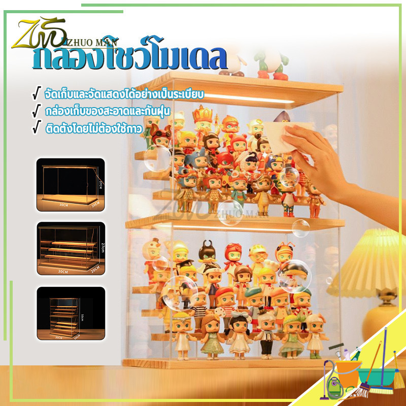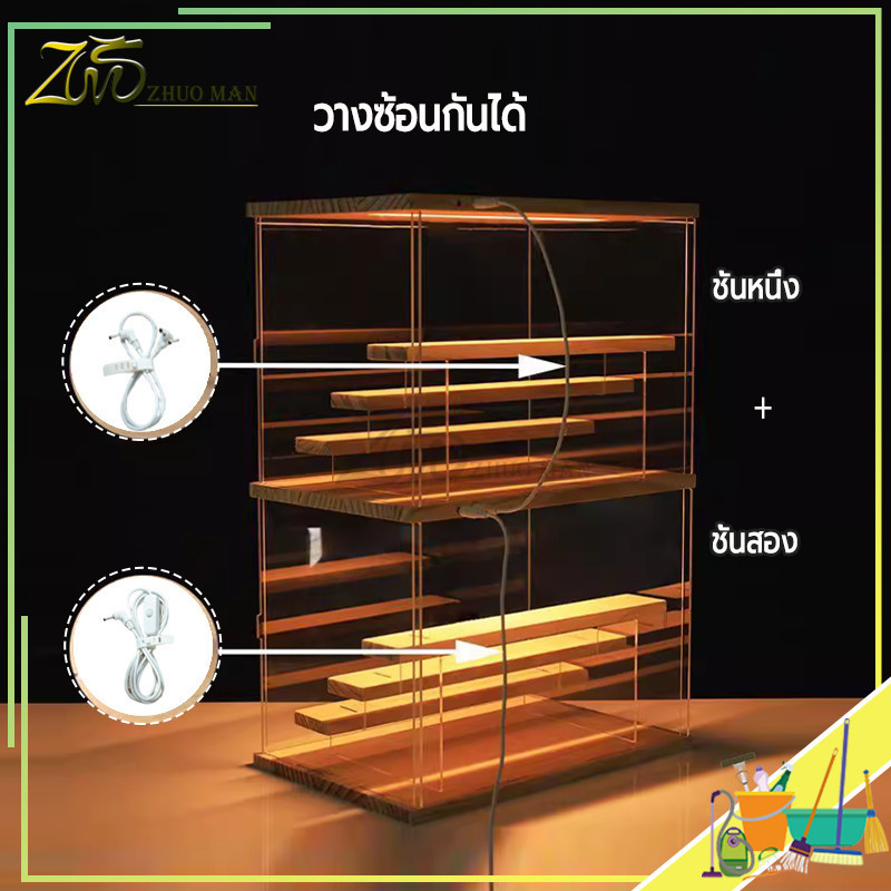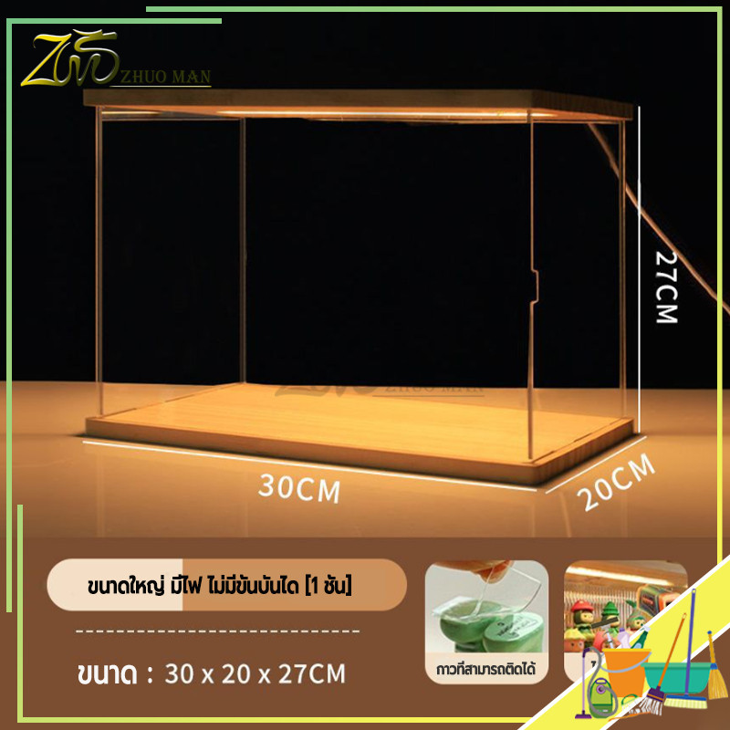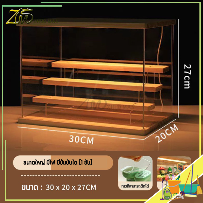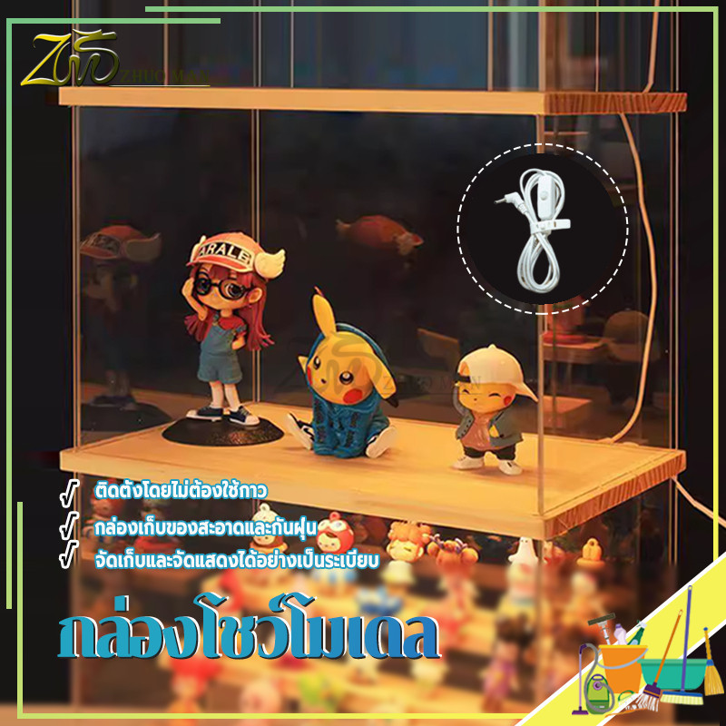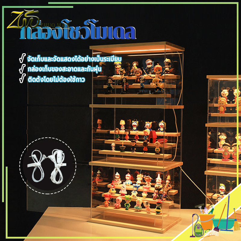 กล่องโชว์โมเดล กล่องโมเดล ตู้ใส่โมเดล ตู้โชว์โมเดลแบบไม้ พร้อมไฟ LED การซ้อนทับสามารถเชื่อมต่อเป็นอนุกรมได้
