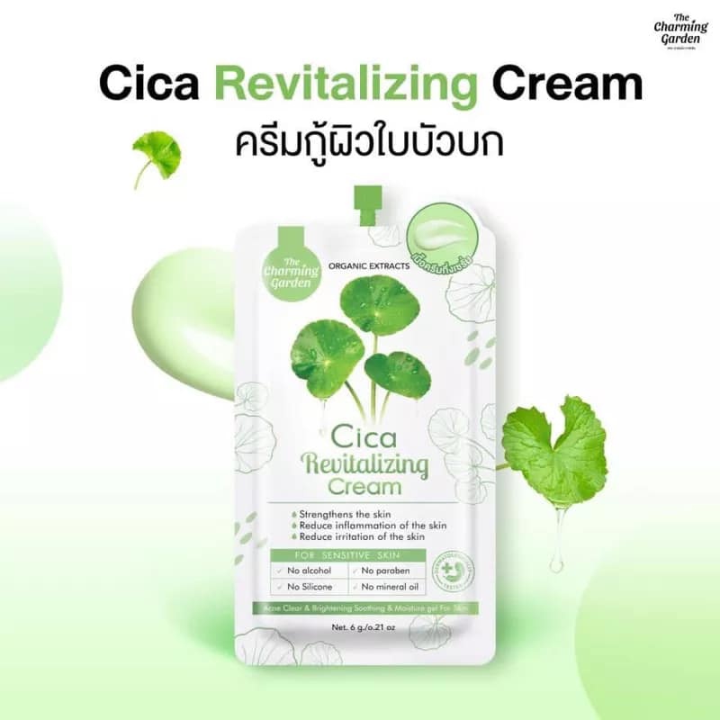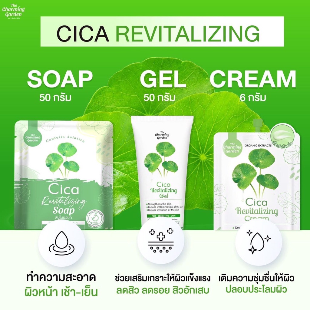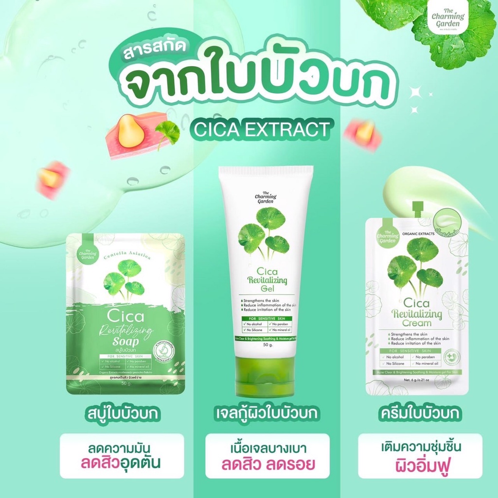 ของแท้ ใบบัวบกกู้ผิว เจล & สบู่ & ครีม 🍀 เดอะ ชาร์มมิ่ง การ์เด้น 🍀 Cica Revitalizing Gel 50g & Soap 50g & Cream
