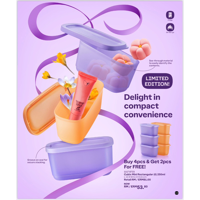 Tupperware รุ่น Cubix Mini Rectangular (1ใบ) 250ml สีส้ม