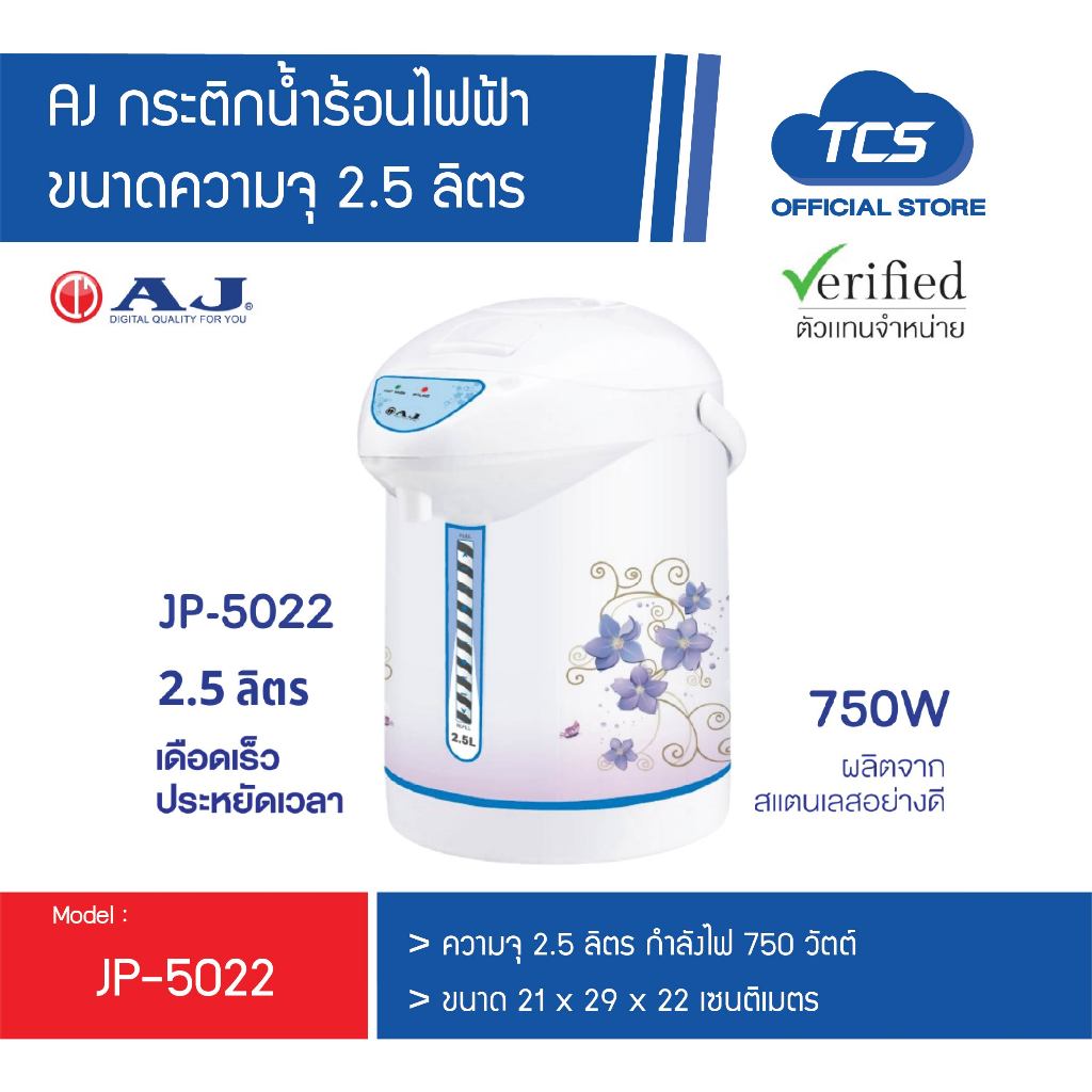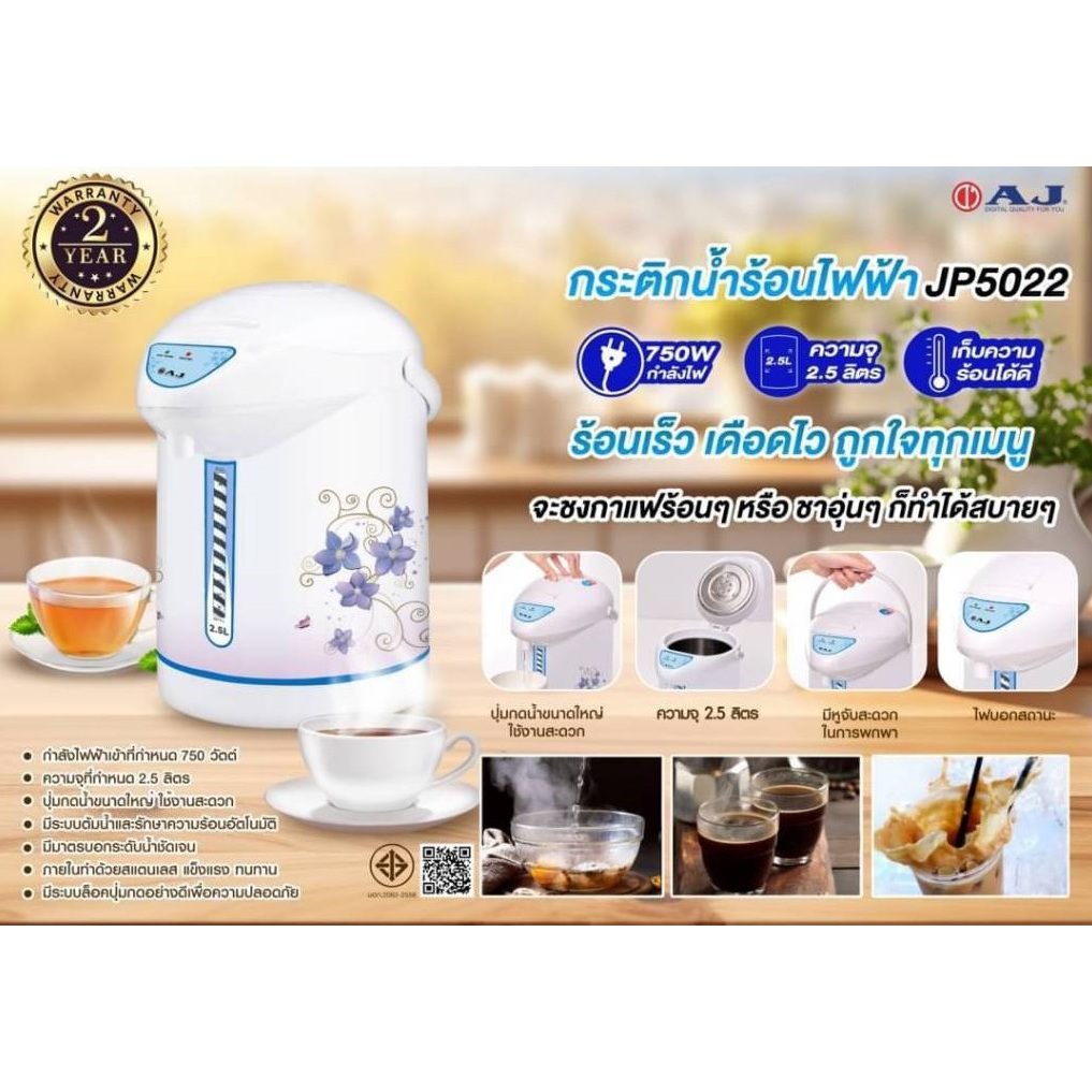 AJ JP-5022 กระติกน้ำร้อนไฟฟ้า 2.5 ลิตร 750W สแตนเลส ดีไซน์หรู ทนทาน รับประกัน 1 ปี