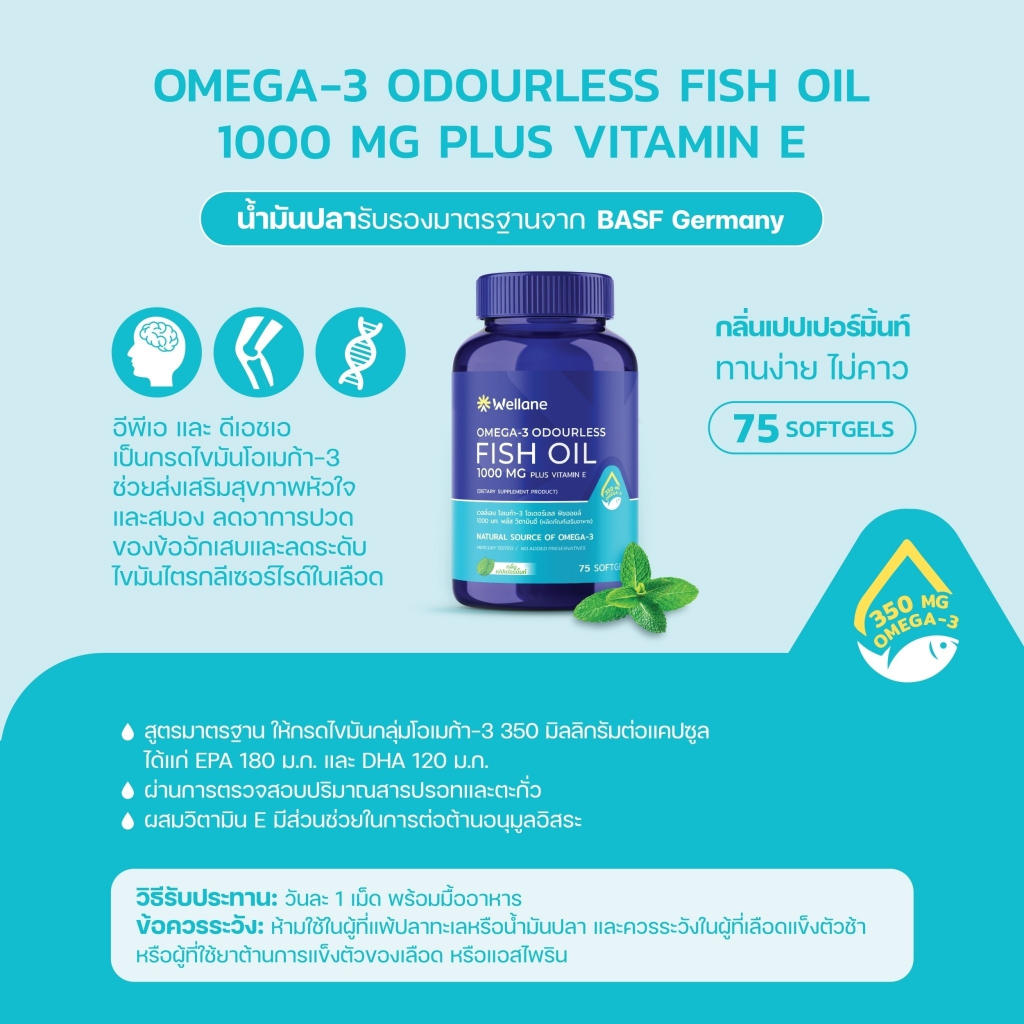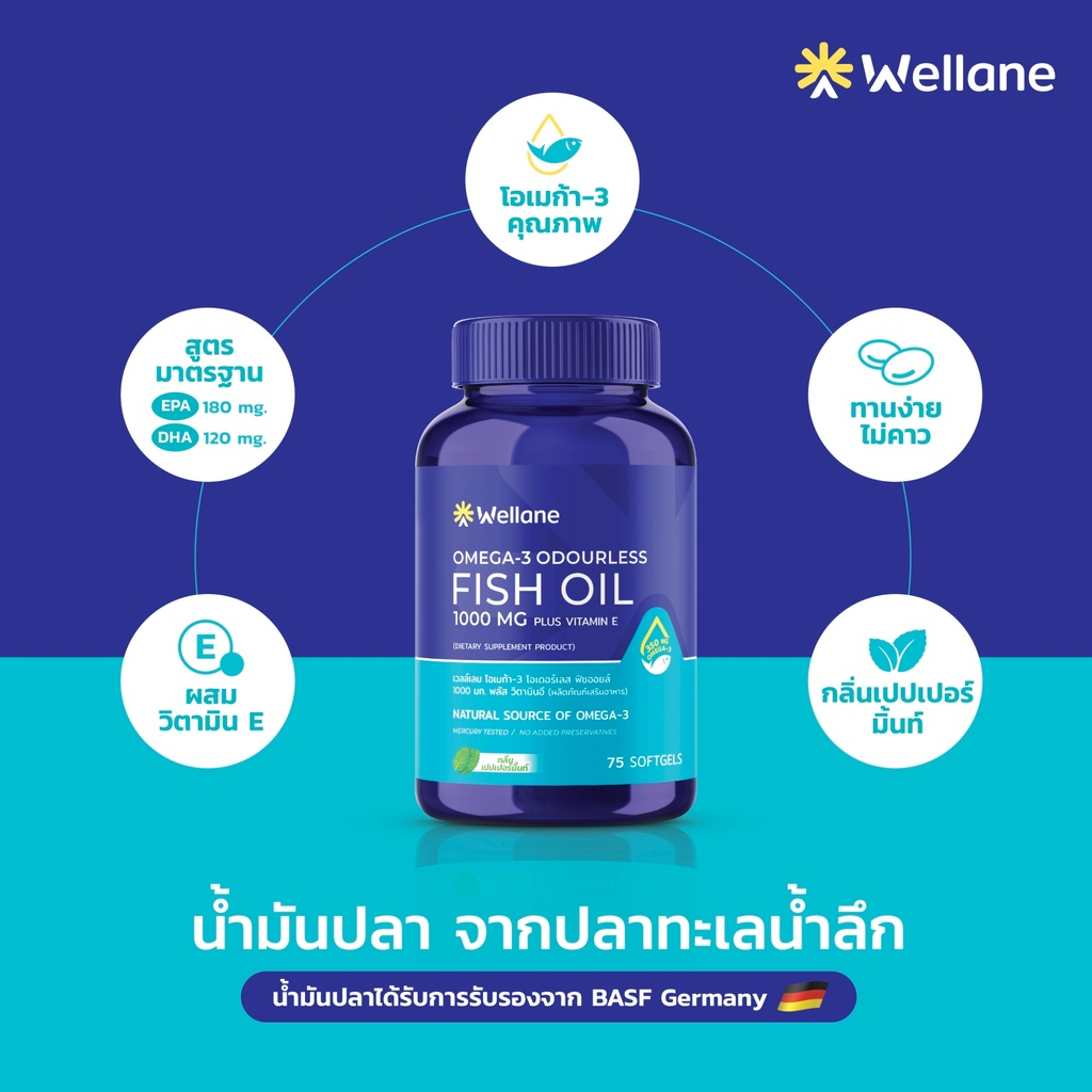 [11.11👉 J864FN ลด 25%] WELLANE Omega-3 Odourless Fish Oil 1000 mg plus Vitamin E - เวลล์เลน โอเมก้า3 โอเดอร์เลส ฟิชออยล์