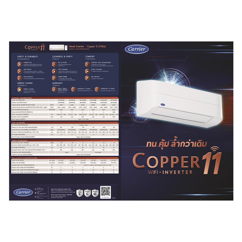 CARRIER แอร์ผนัง 42TVEA024B 20400 บีทียู อินเวอร์เตอร์ จัดส่งโดย HomePro