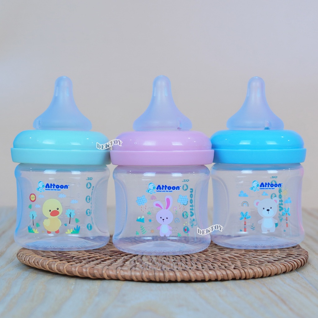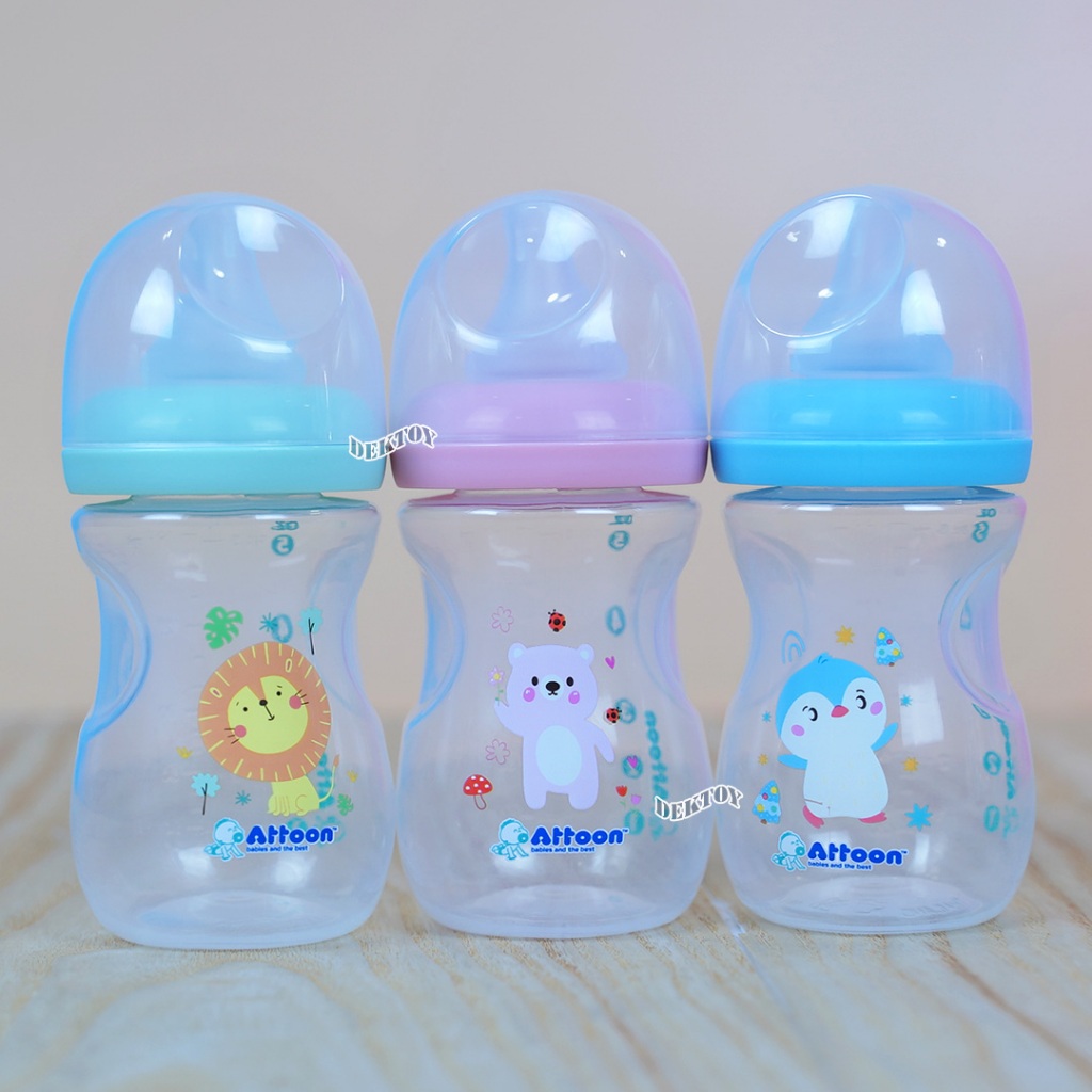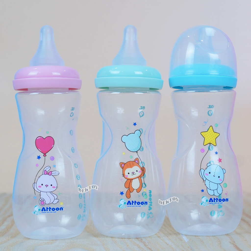 แพ็ค3ขวด Attoon ขวดนมแอทตูน คอแคบ,คอกว้าง พร้อมจุก Antichoke ไม่ดูดไม่ไหล 4/5ออนซ์ 8/9ออนซ์