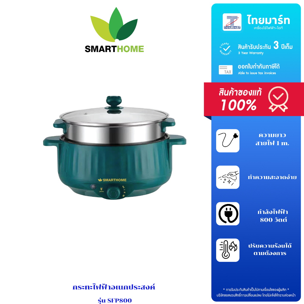 SMARTHOME กระทะไฟฟ้า อเนกประสงค์พร้อมซึ้งนึ่ง รุ่น SFP800