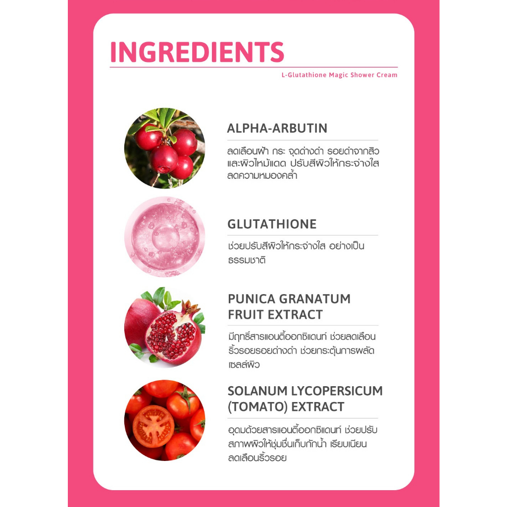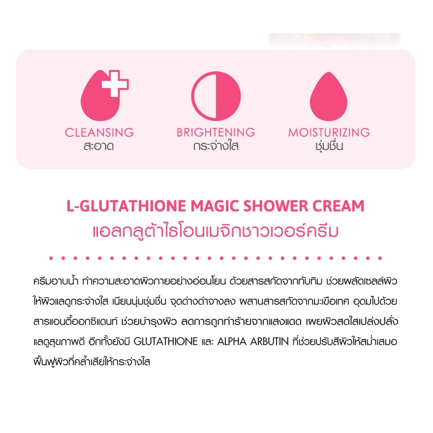 ครีมอาบน้ำ【แอลกลูต้าไธโอน】ผิวกระจ่างใสขึ้น L-GLUTATHIONE MAGIC SHOWER CREAM 500ML CATHY DOLL