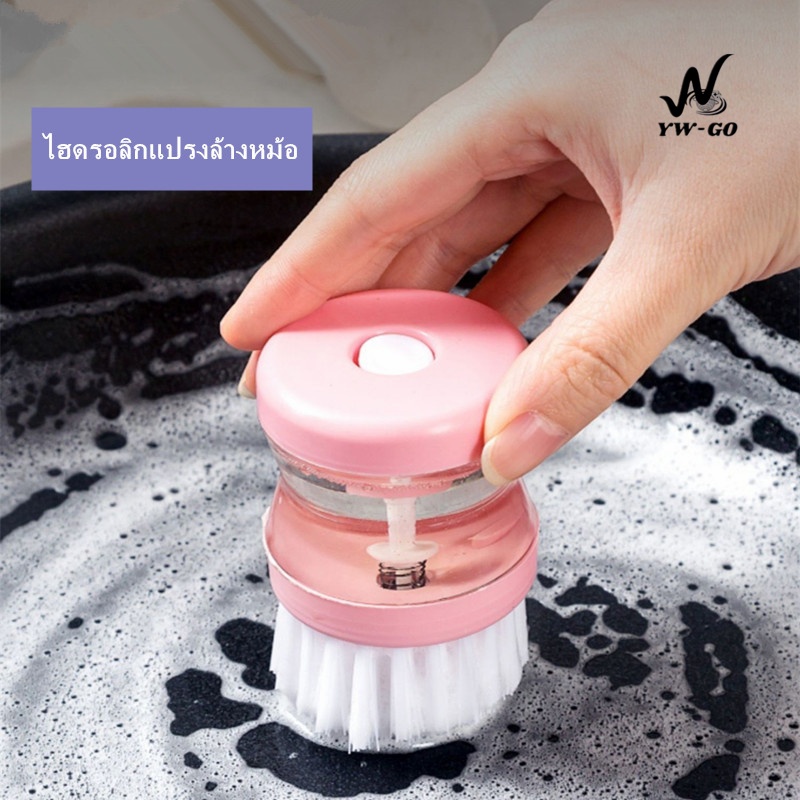 แปรงล้างหม้อในครัว ฝอยขัดหม้อมีที่กดน้ำยา ฝอยขัดหม้อมีด้ ามจับ จัดส่งจากประเทศไทย G2050