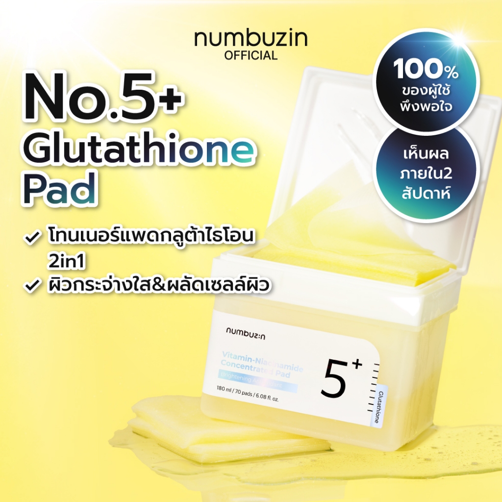 numbuzin No.5+ โทนเนอร์แพด Vitamin Concentrated 180ml / 70 แผ่น [ผิวกระจ่างใส/กลูต้าไธโอน]
