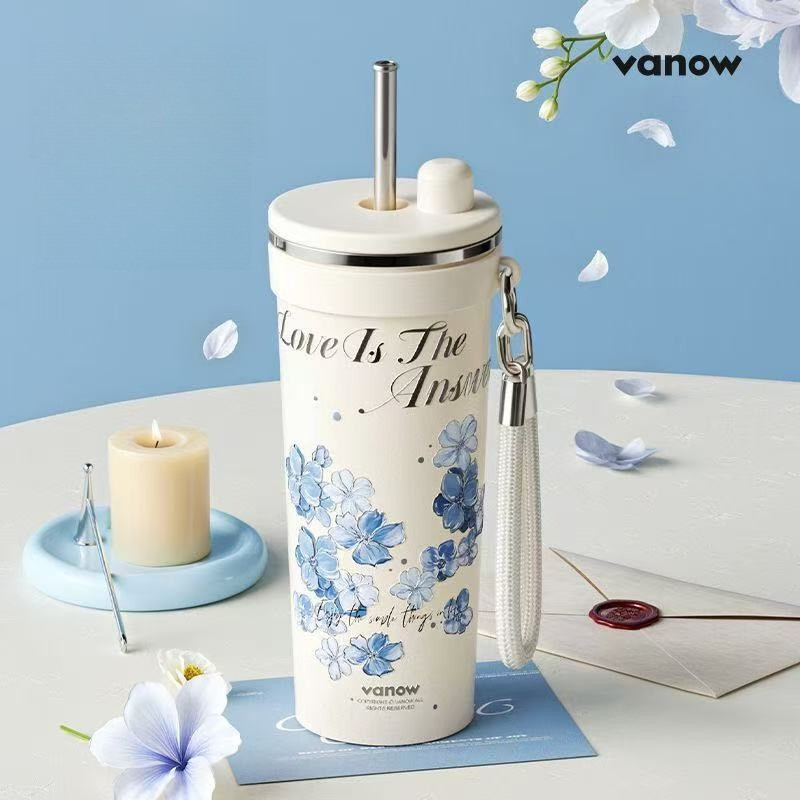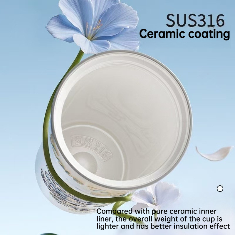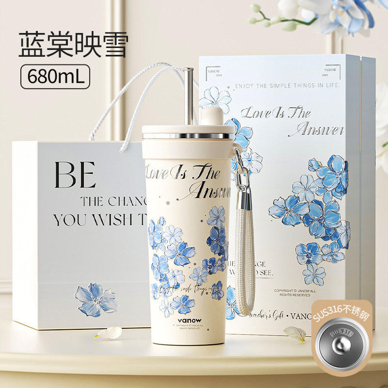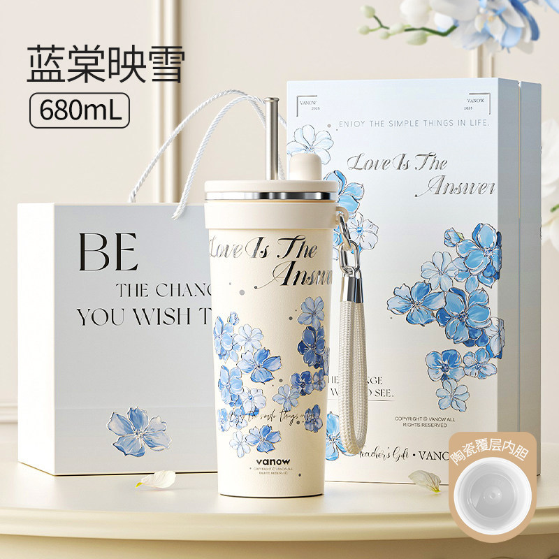 【LUCKY】VANOW เคลือบเซรามิกกระติกน้ําร้อนถ้วยดีฉนวนกันความร้อนระบายความร้อนผล316ถ้วยกาแฟสแตนเลสที่มาพร้อมกับถ้วยกล่องของขวัญของขวัญวันเกิด680มิลลิ