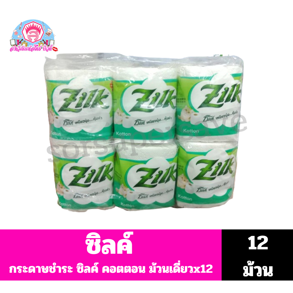 ซิลค์ Zilk กระดาษชำระ คอตตอน ม้วนเดี่ยวx12ม้วน**แพ็ค12ม้วน**