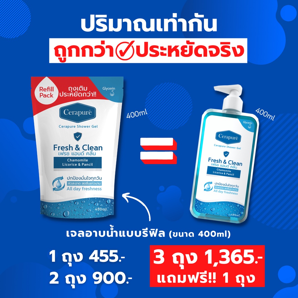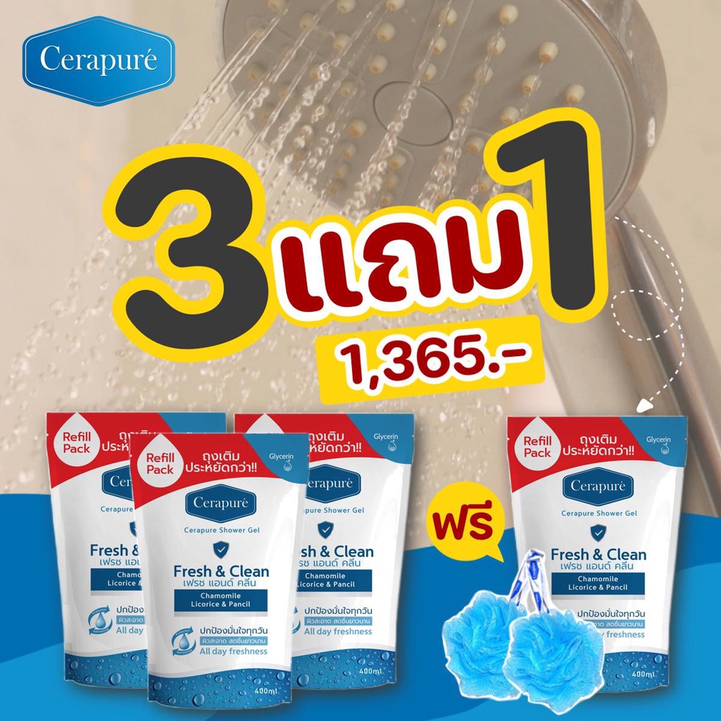 Cerapure Shower gel เจลอาบน้ำ สบู่เหลว เซราพิวเร่ ระงับกลิ่นกาย พร้อมส่ง ขนาด 400 ml (รีฟิล)