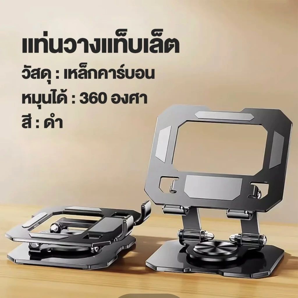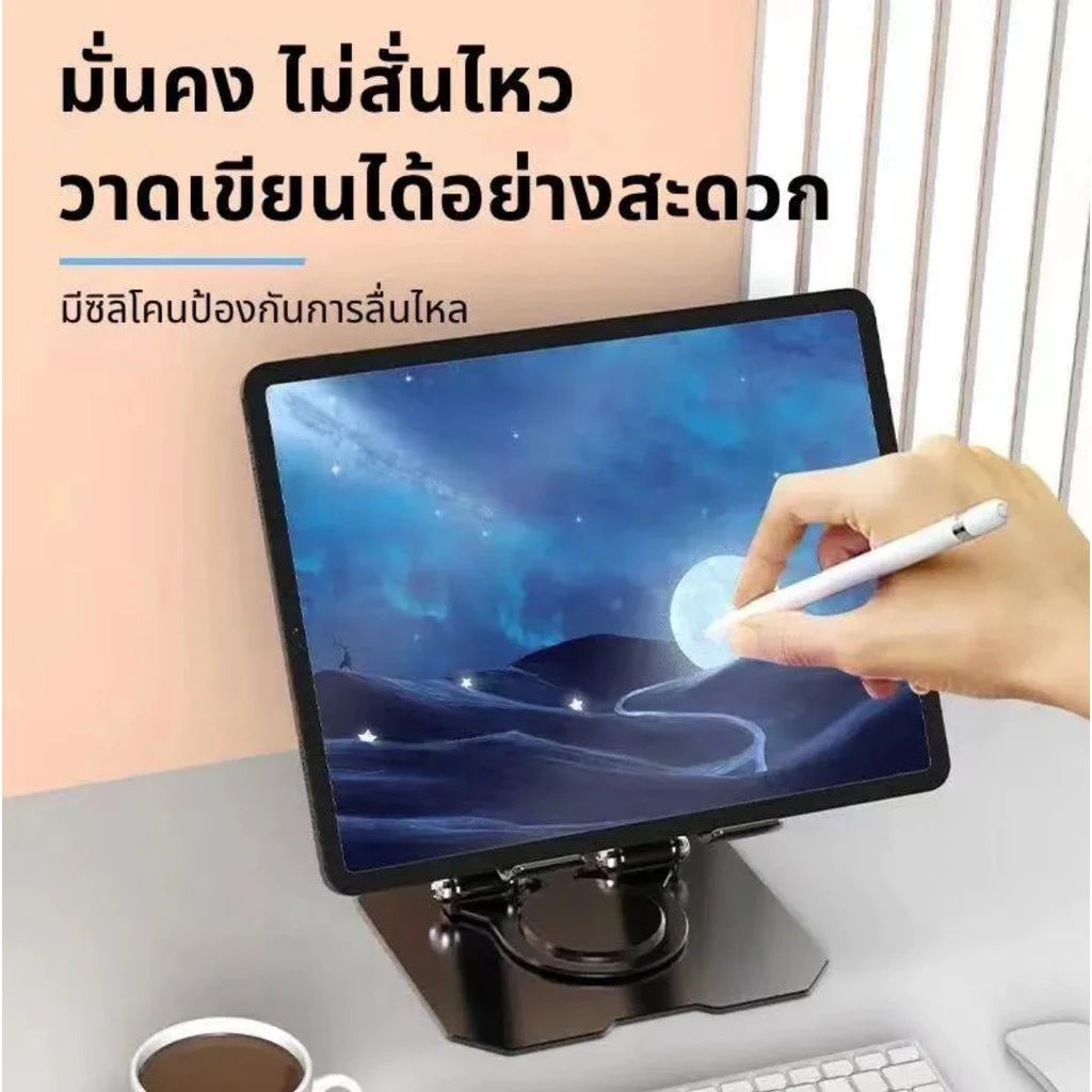 ขาตั้งไอแพด แท็บเล็ต แล็ปท็อป แบบพับ โลหะ ปรับหมุน 360 องศา สีดำ
