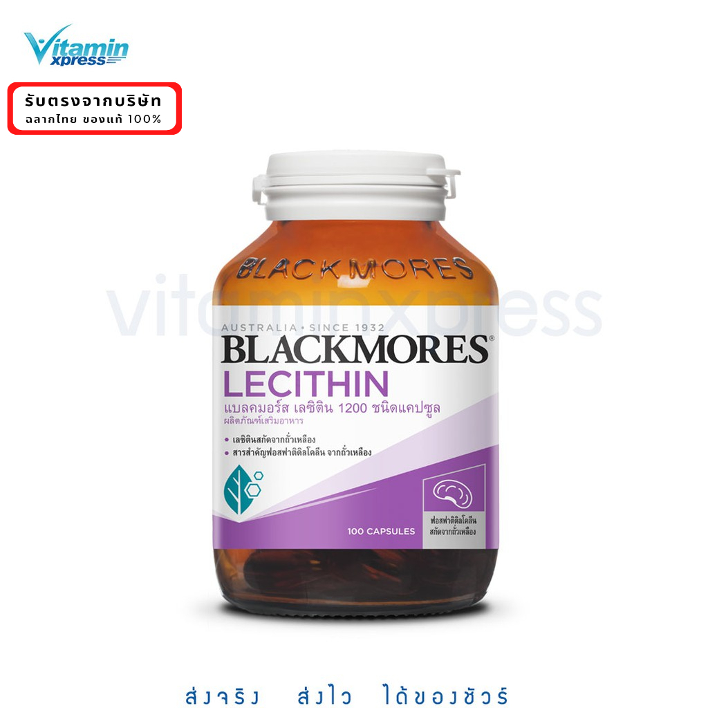 Exp.04/28 Blackmores Lecithin 1200mg 100's แบลคมอร์ส เลซิติน 1200 ชนิดแคปซูลเลซิติน ไขมันชนิดฟอสโฟไลปิด วิตามิน